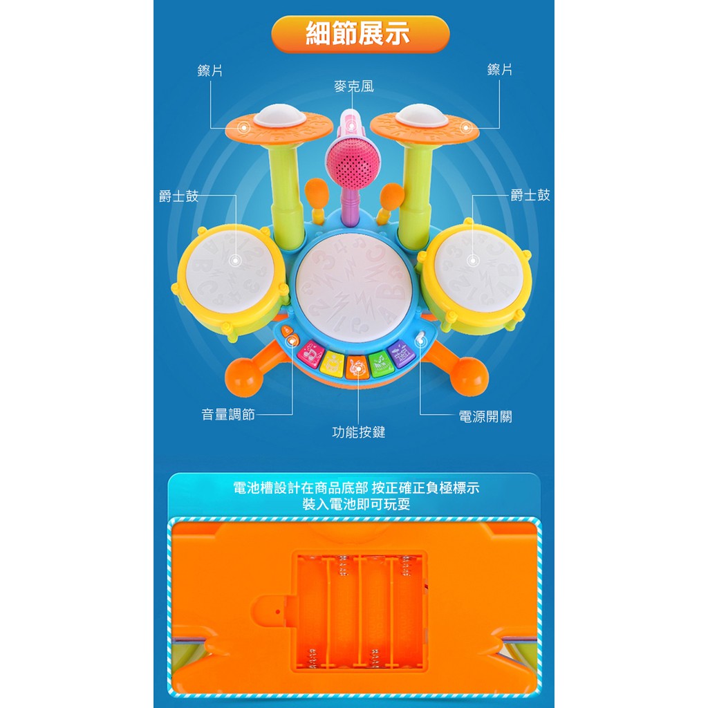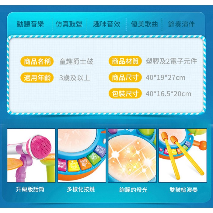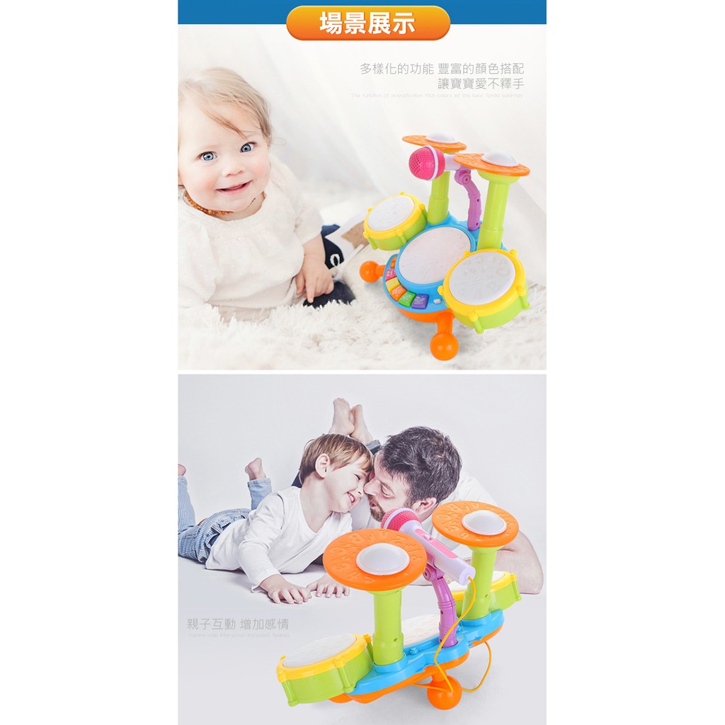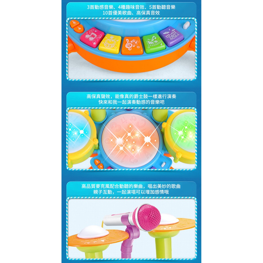 音樂鼓 兒童爵士鼓 電動燈光 益智玩具 -雪倫小舖