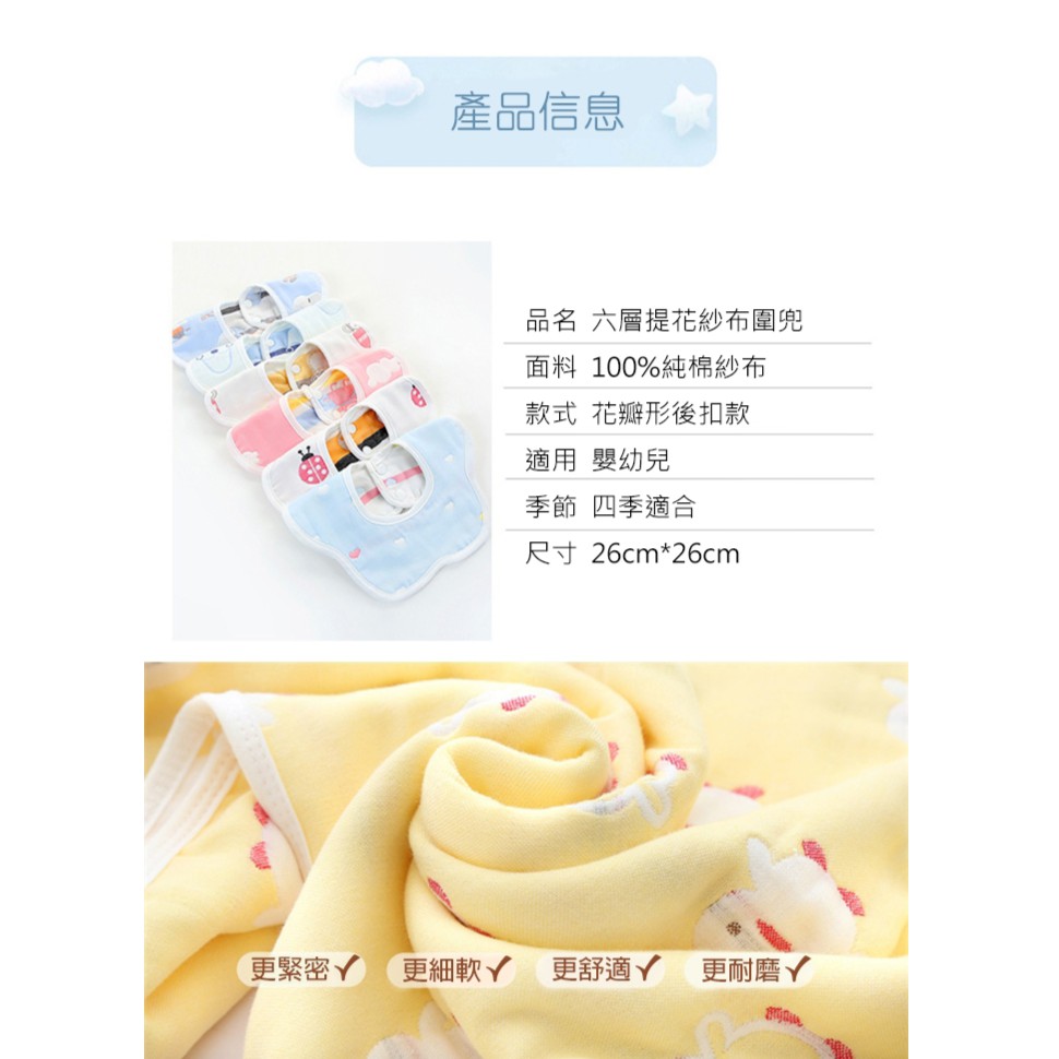 圍兜手帕 六層花邊紗布口水巾 寶寶用品 -雪倫小鋪