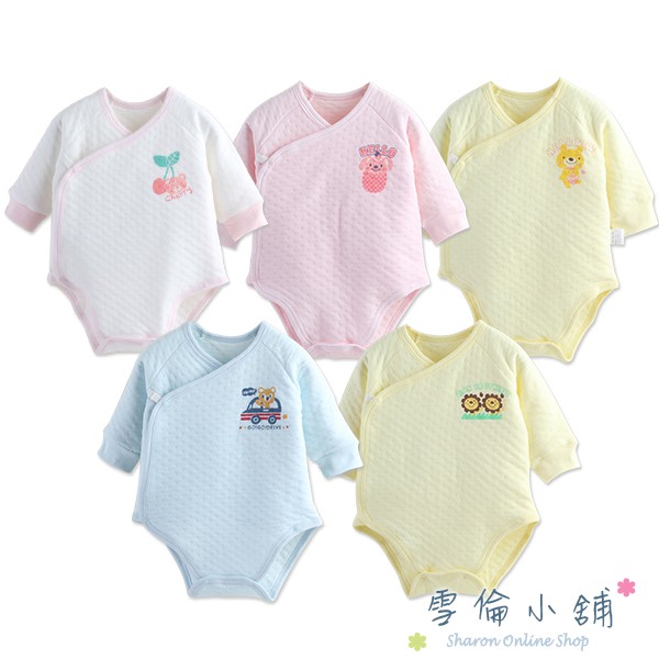 童裝純棉包屁衣 長袖睡衣緹花空氣棉(斜開式)連身衣 雪倫小舖