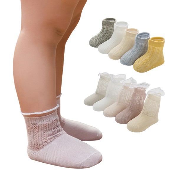 5雙入-兒童襪寶寶短襪花邊鏤空薄棉網眼襪 雪倫小舖