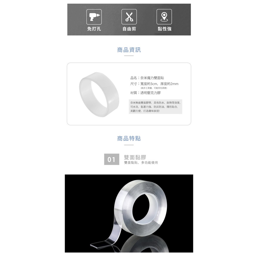 神奇萬用膠 加厚強力黏性無痕雙面透明膠帶不留痕防水固定粘膠貼片 - 雪倫小舖