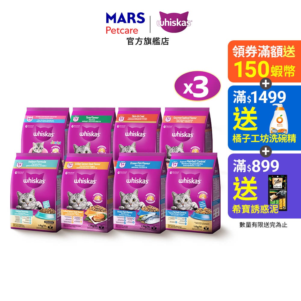 【Whiskas偉嘉】貓乾糧 3入 (1.1kg/1.2kg/袋) 小包裝 多口味 寵物 貓飼料/貓主食