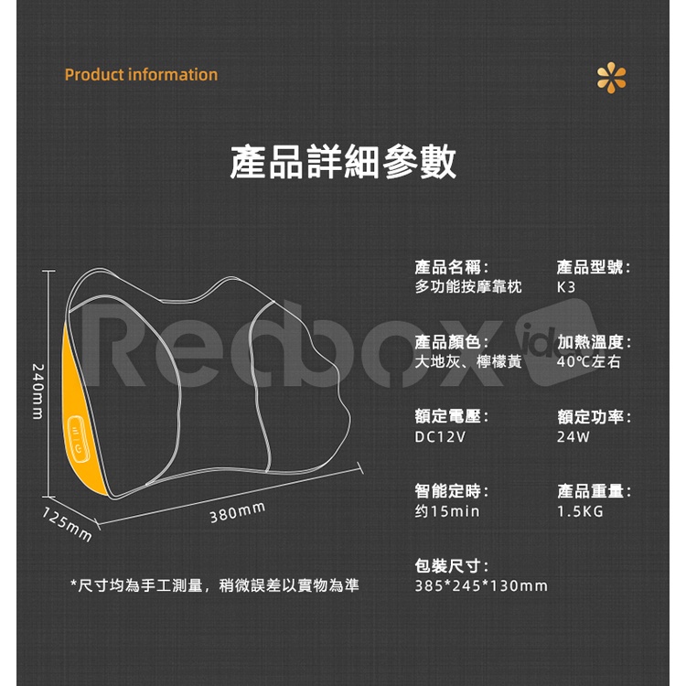 Redbox 多功能按摩器 按摩枕(充電款) 腰靠/腰椎/頸部 | REDBOX IDEA 台灣總代理商 | 一年保固