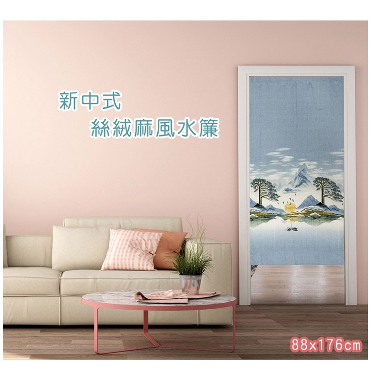 情境山水絲絨麻風水簾88x176cm/長門簾/防蚊門簾/風水簾