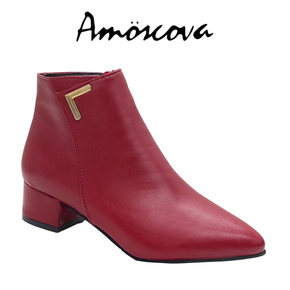 (小碼專區現貨)【Amoscova】尖頭踝短靴踝靴 短靴 尖頭跟 絨毛靴 皮靴 美靴 女靴 裸靴 踝靴 (155)