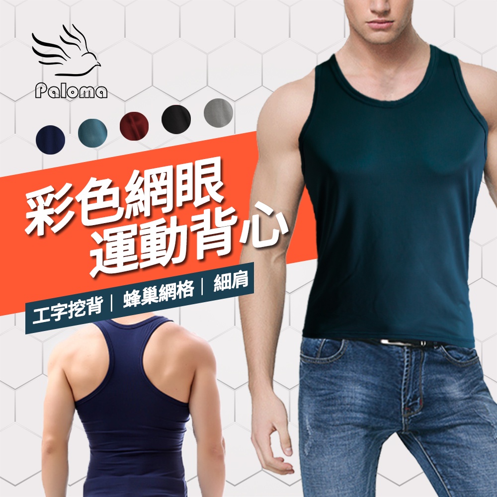 【Paloma】彩色網眼運動背心 吸濕排汗 工字挖背 男生背心 背心