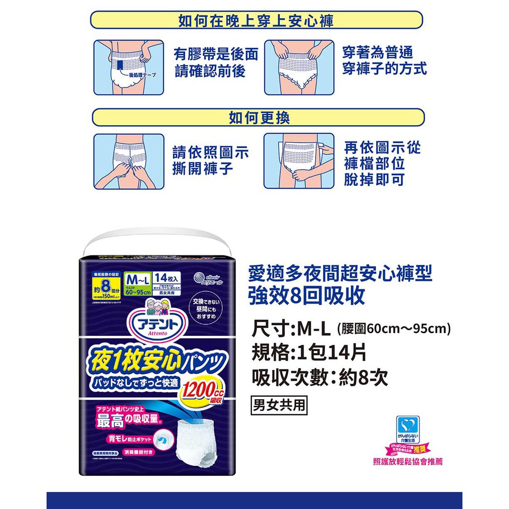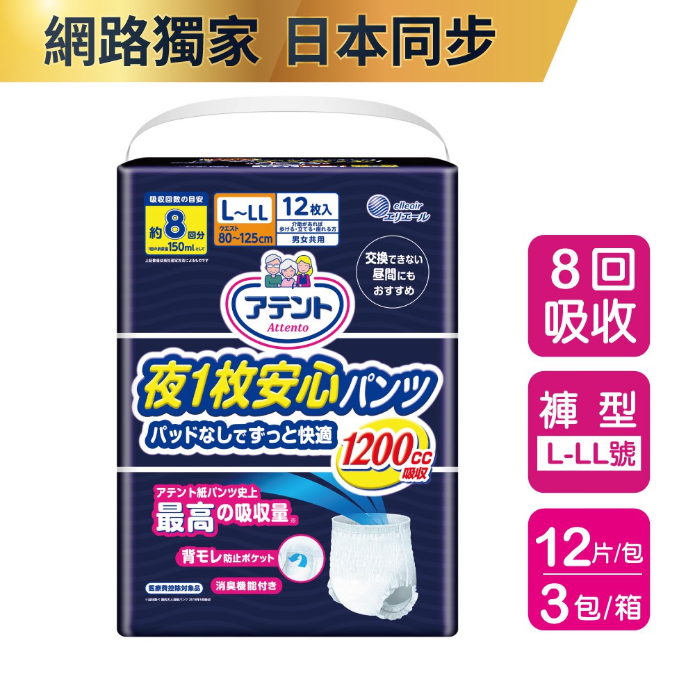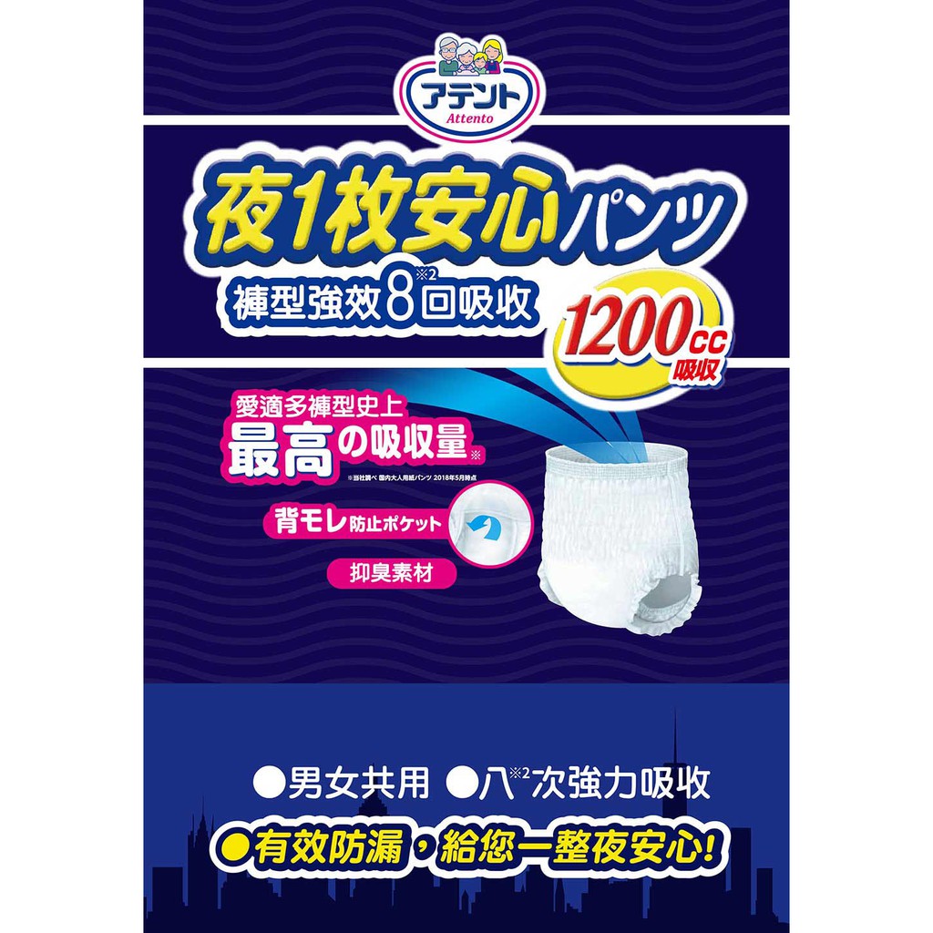 日本大王Attento 愛適多夜間超安心褲型強效8回吸收_男女共用_尺寸任選 (3包/箱) (箱購)