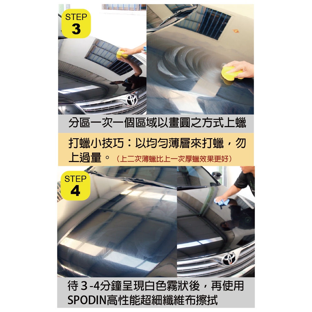 【SPODIN司伯汀】棕櫚蠟 汽車美容三件組-全車系( 棕櫚蠟+輪胎濕亮保護劑+玻璃油膜清潔劑)
