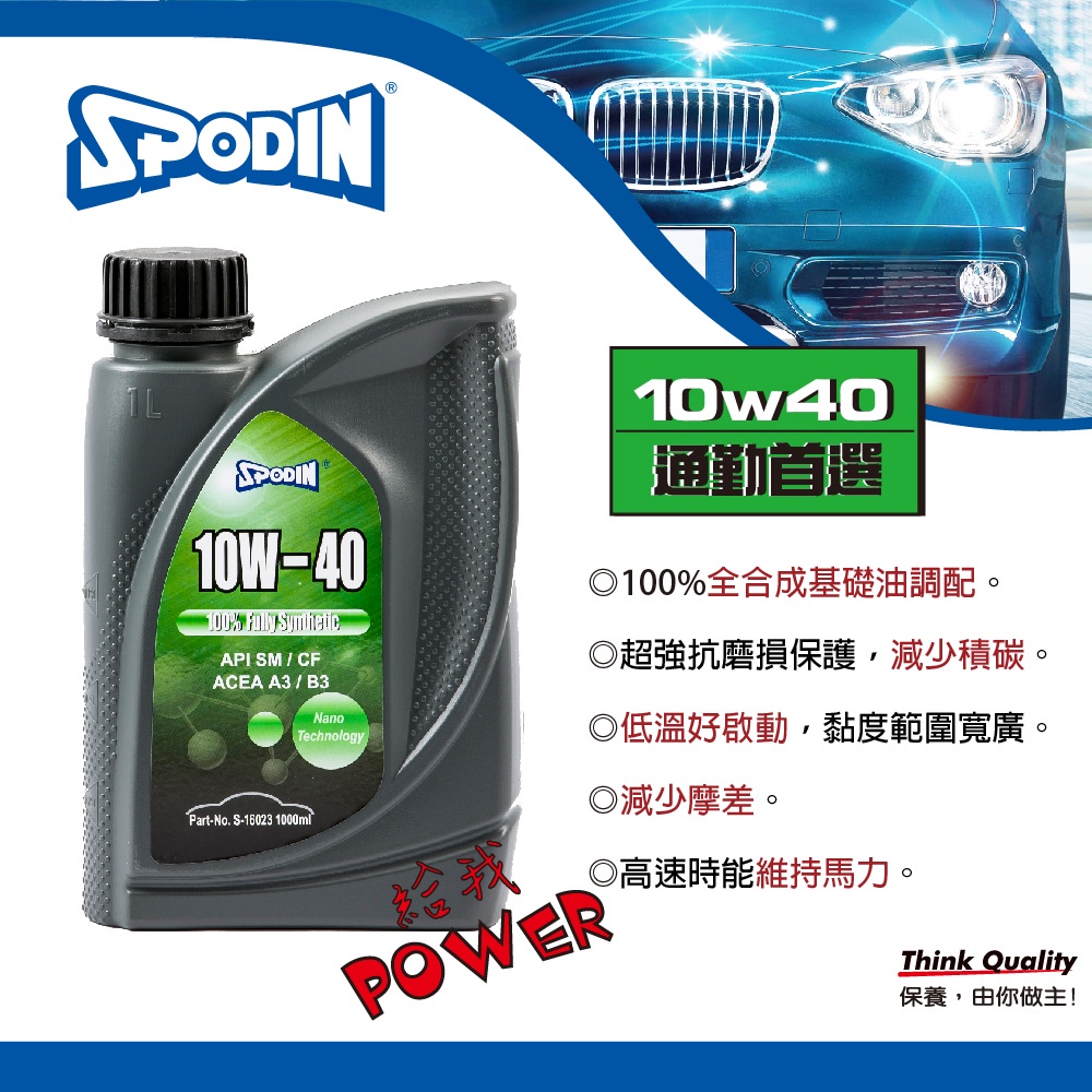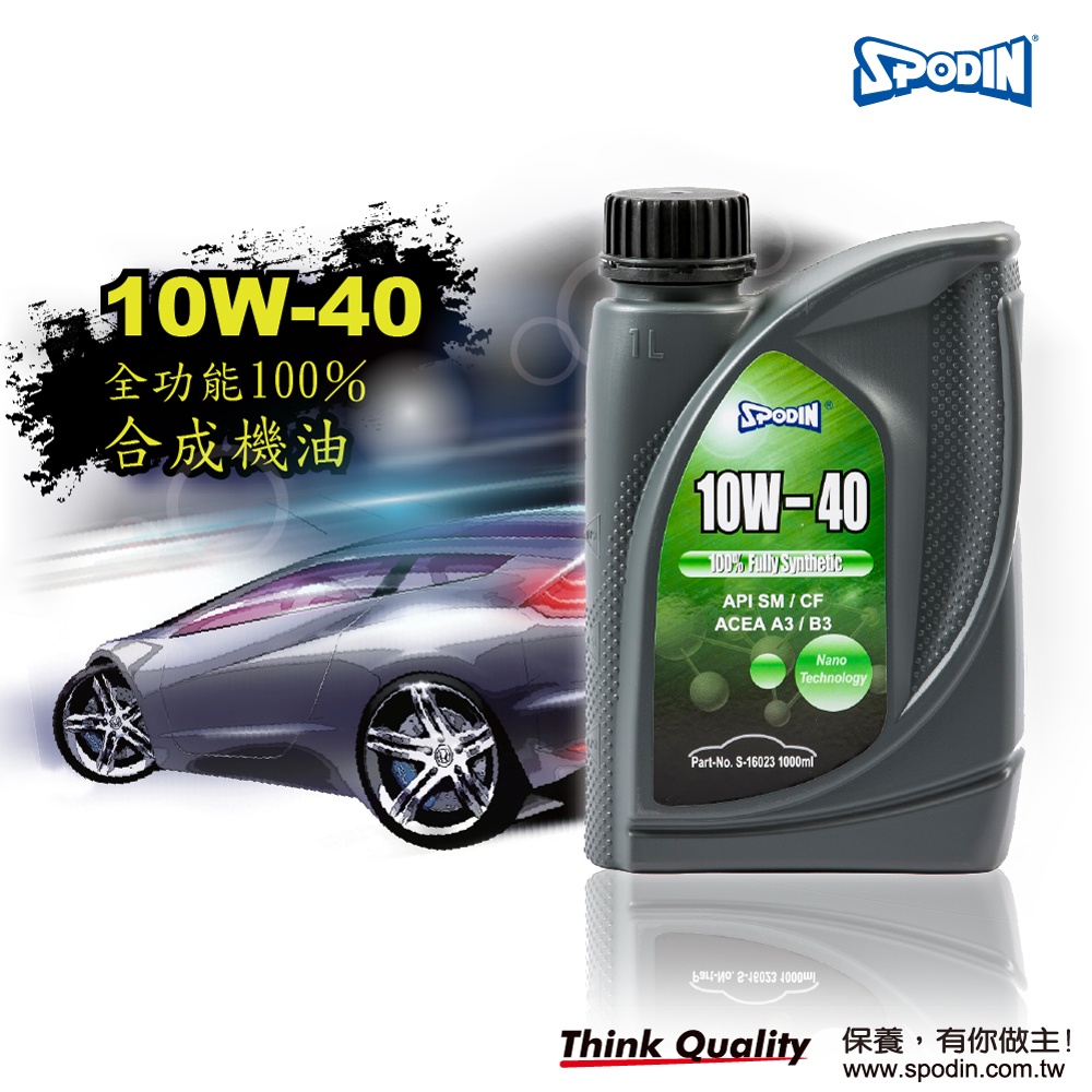 【SPODIN司伯汀】10W40 全合成 全功能機油-油膜強韌安定 超強抗磨損、降低積碳、油泥 有效降低引擎噪