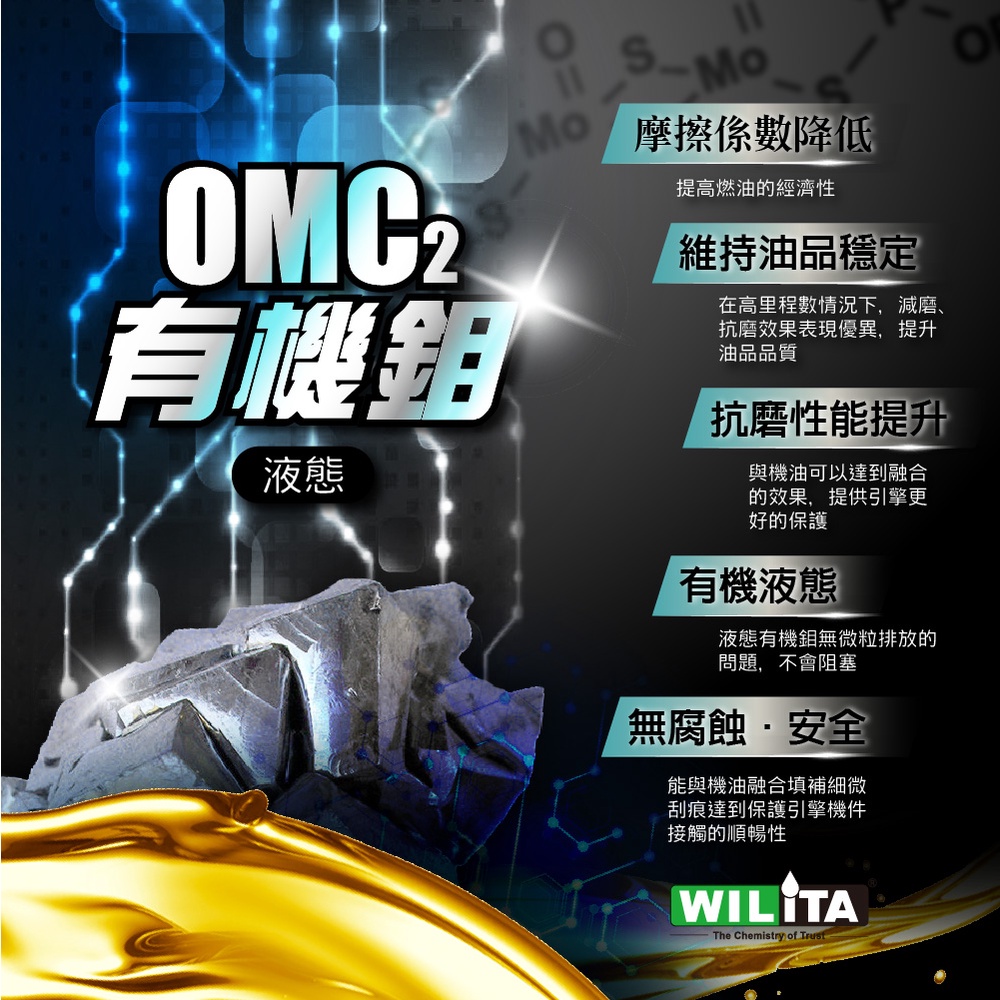 【WILITA 威力特】抗磨修補引擎機油精 超值3入(鉬元素OMC2有機鉬) 修補引擎刮傷 降低引擎噪音 恢復馬力