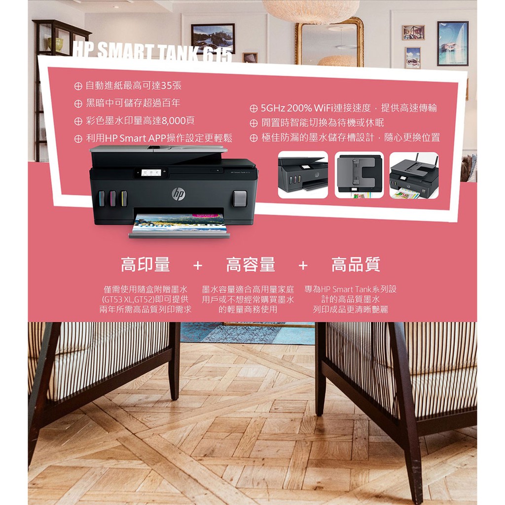 HP 惠普 Smart Tank 615 連供 連續供墨 傳真 多功能 事務機 登錄送1千元禮券(詳請請參閱內文)