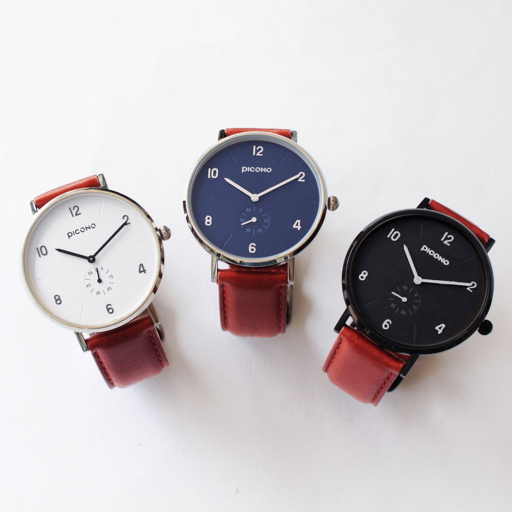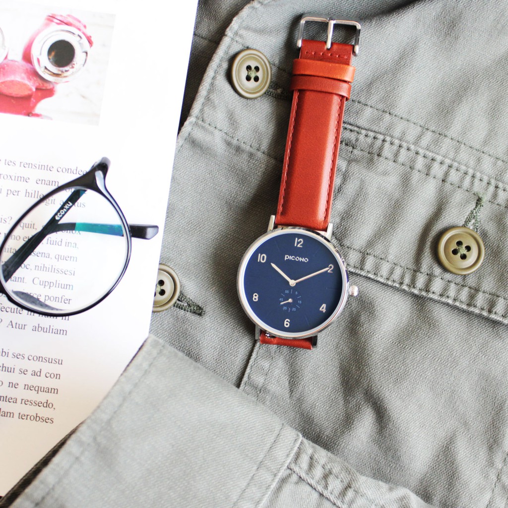 PICONO Classic Metal 經典金屬系列棕色真皮簡約手錶 / CE-9003