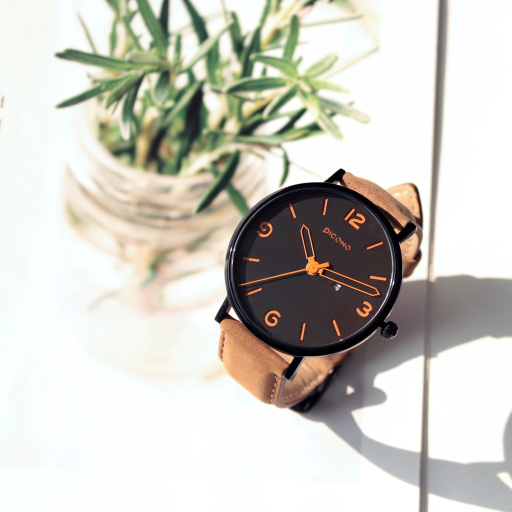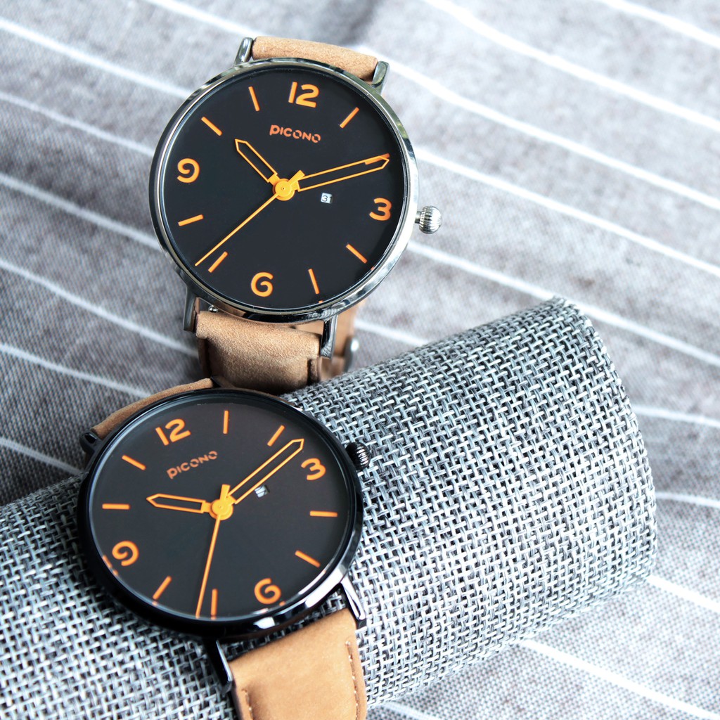 PICONO Teen系列簡約撞色設計瘋馬真皮錶帶中性錶 / AR-6702
