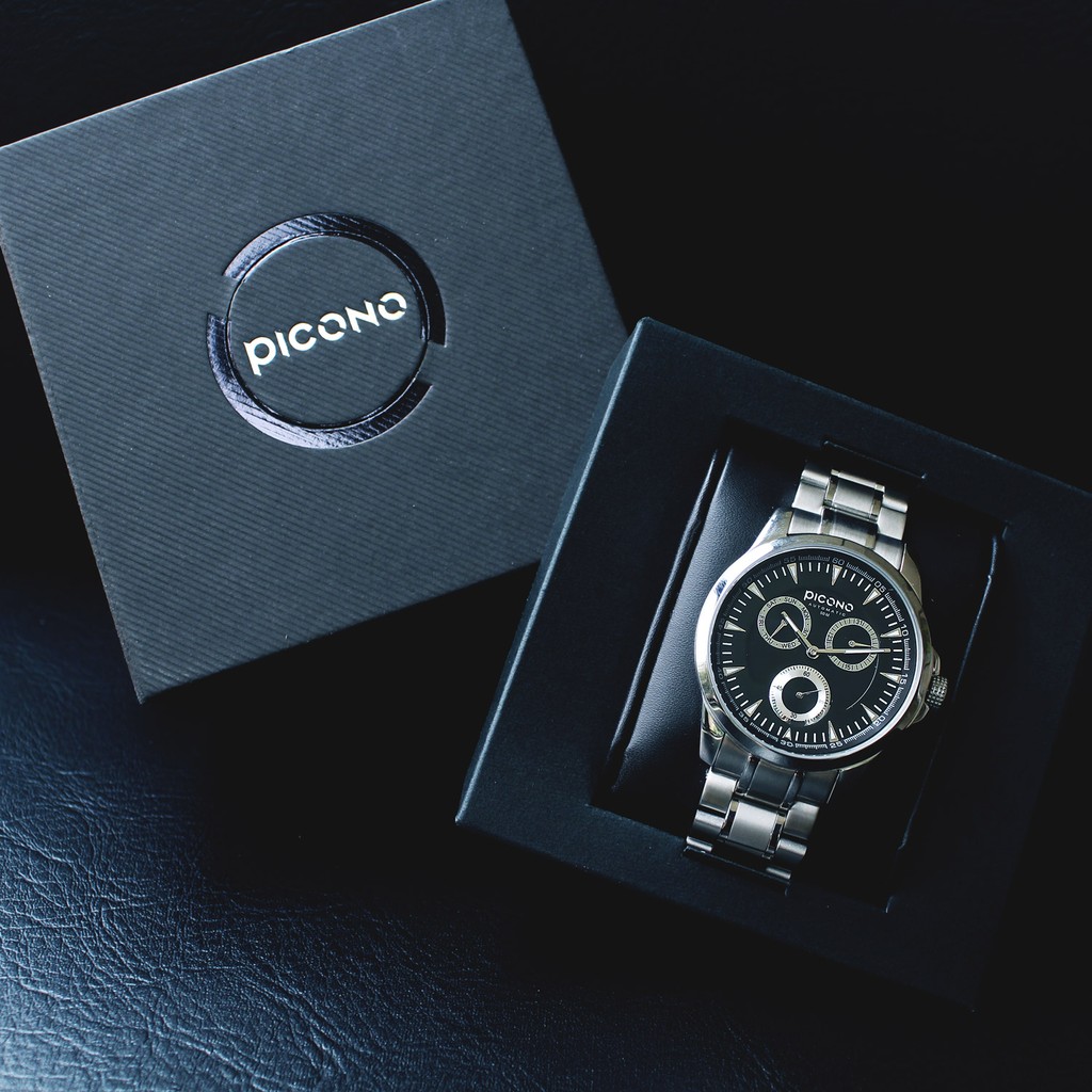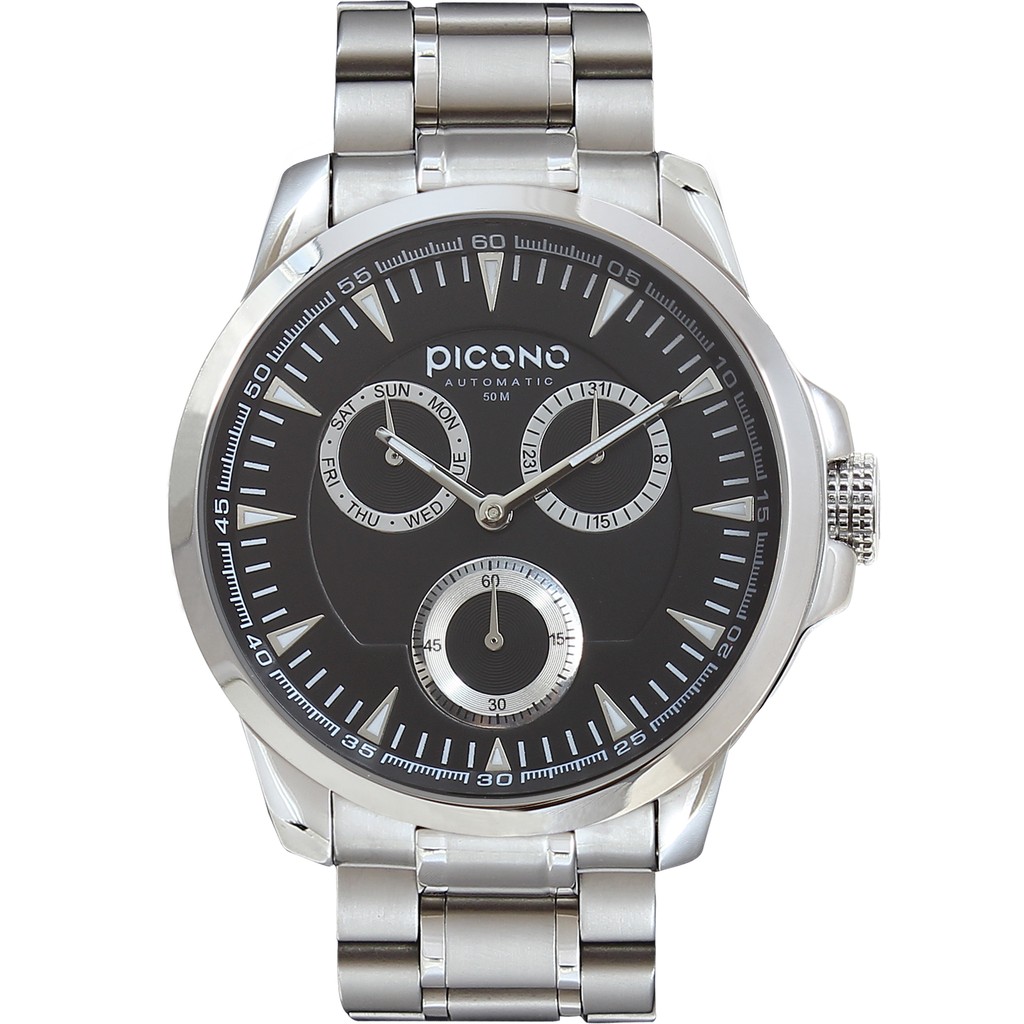 PICONO Eunice紳士三眼多功能系列手錶 黑色/銀色 / ST-1802