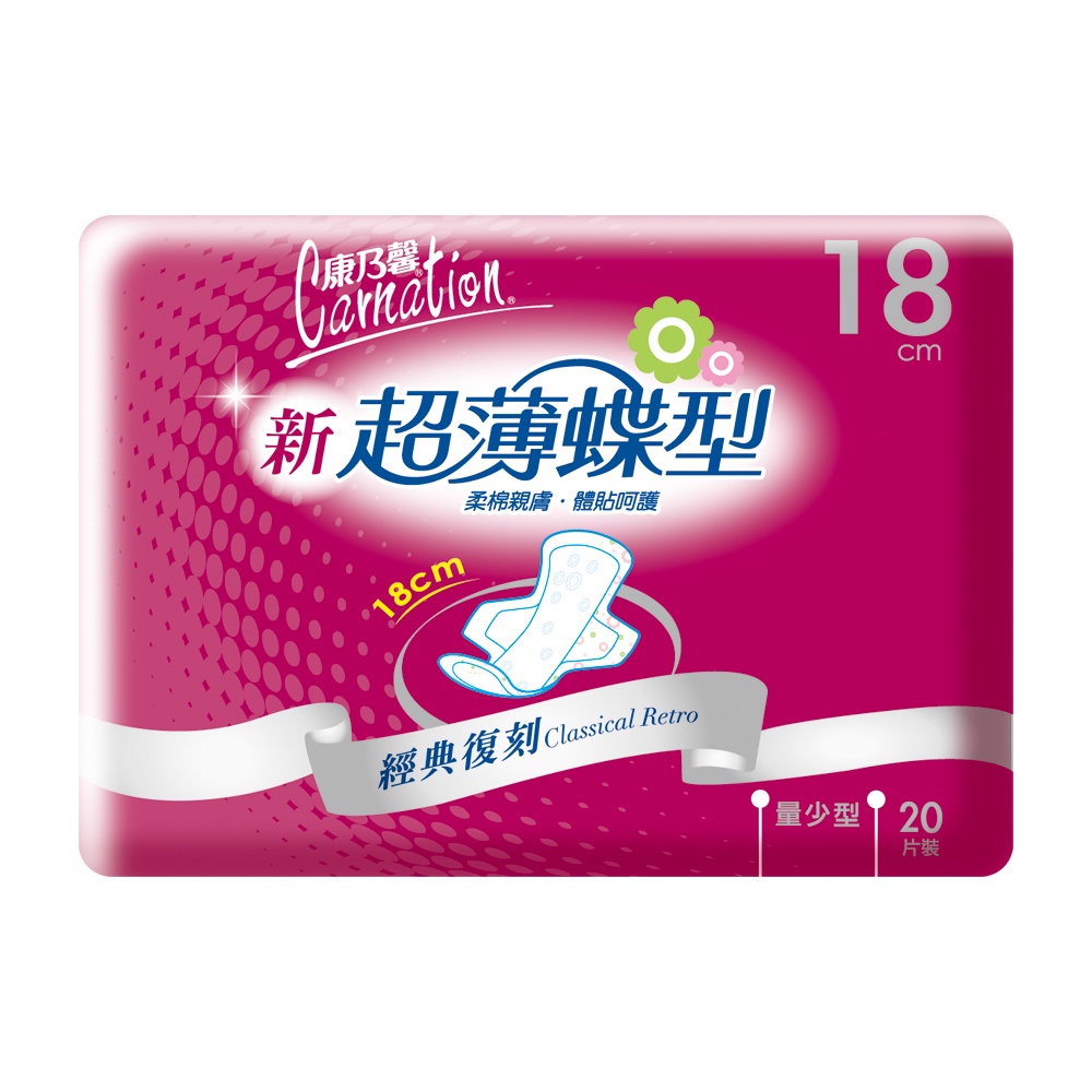 KNH康乃馨 (新)超薄蝶型衛生棉 量少型 18cm 0.2cm超薄 康那香