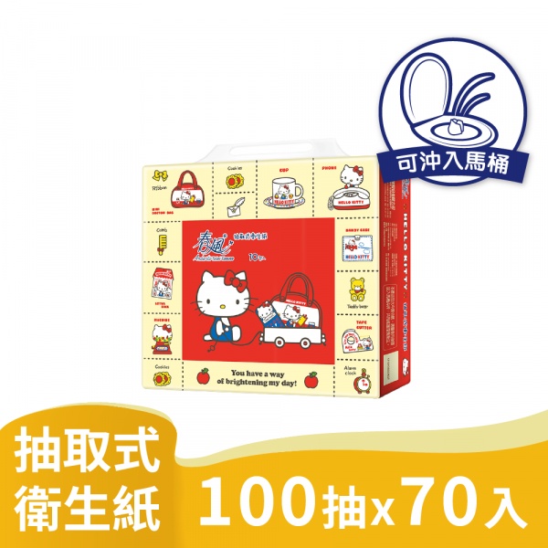 春風 抽取式 衛生紙 KITTY 100抽10包7串/箱購 共70入箱 三麗鷗授權,台灣區獨家販售