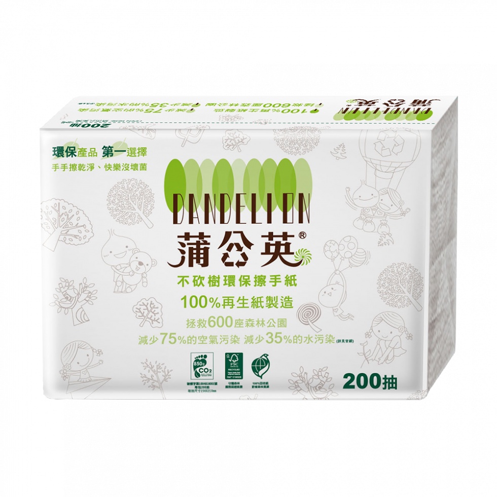 蒲公英 環保 擦手紙 3折 200張20包/箱 環保標章0519 不含雙酚A