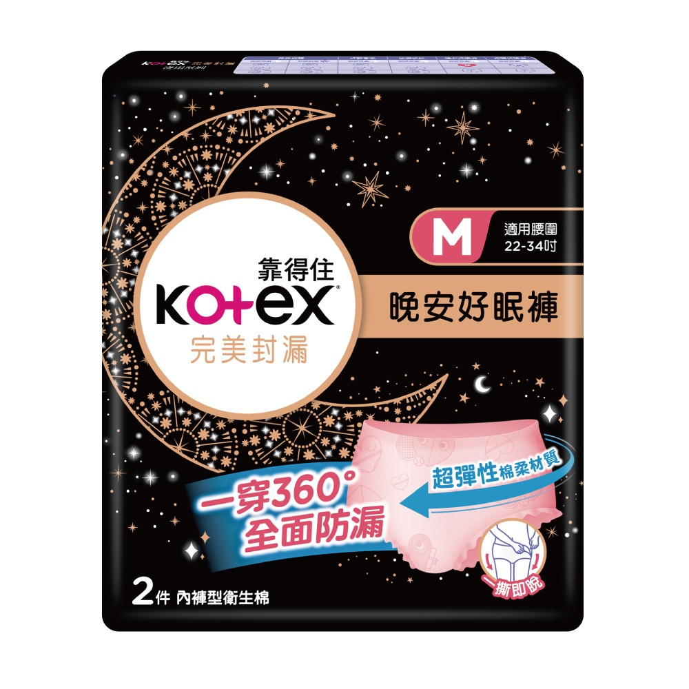 Kotex 靠得住 完美封漏 晚安 抑菌 好眠褲 M L 2件入
