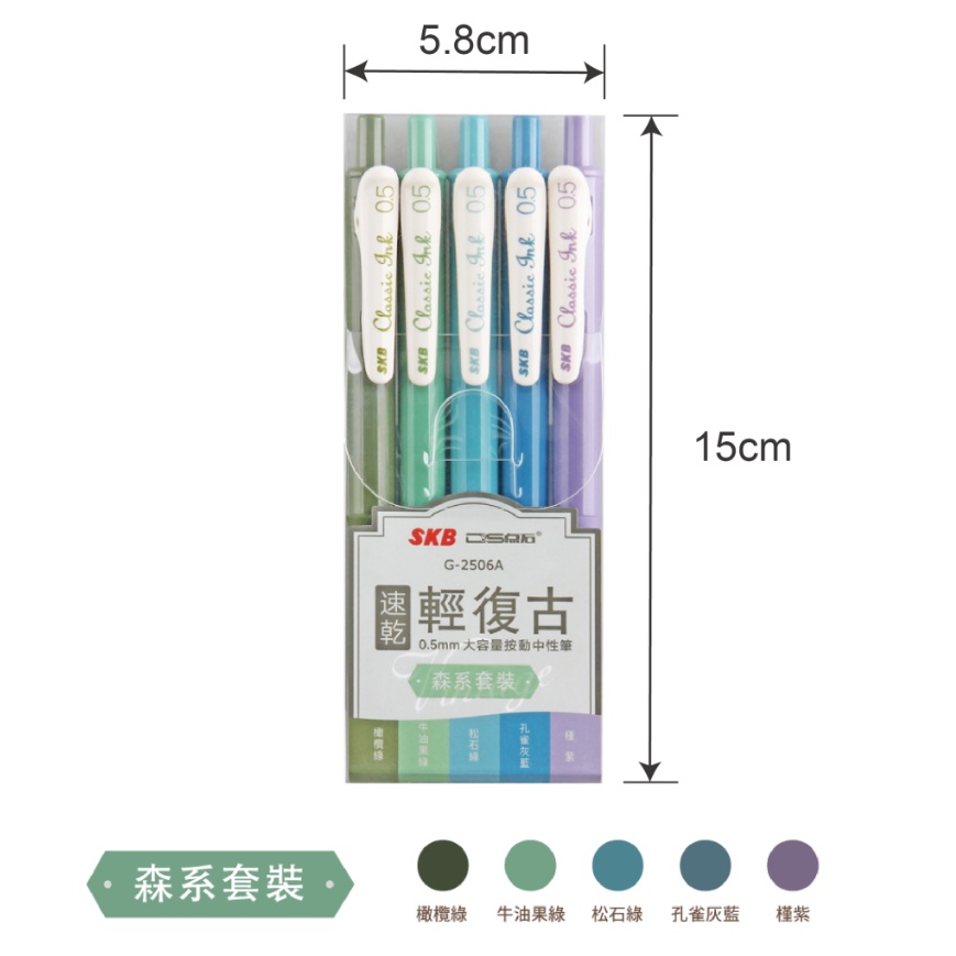 SKB 輕復古色速乾大容量按動中性筆 【0.5mm / 5入】共4款 ST9PLUS