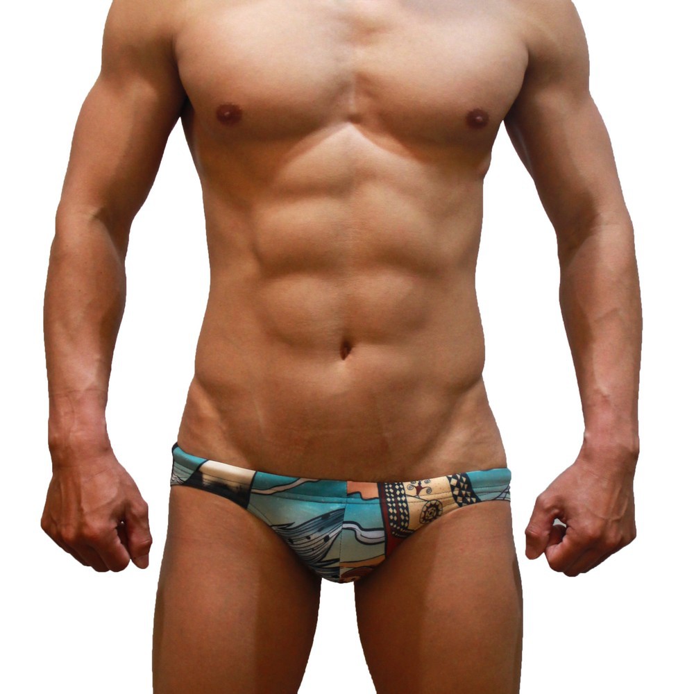 【Neptune Scepter】海神權杖 超低腰立體三角泳褲(CAT-03黒腹山) |男泳褲 比基尼 海灘 台灣製