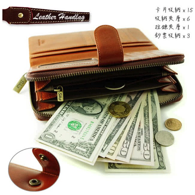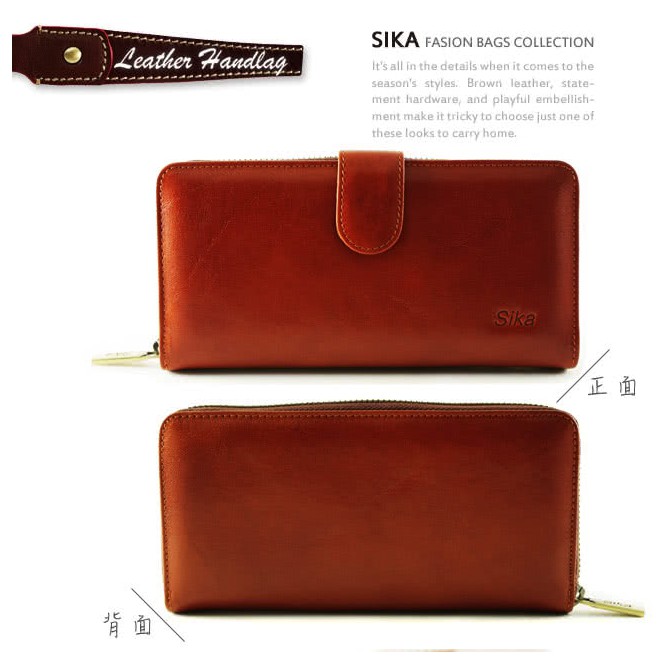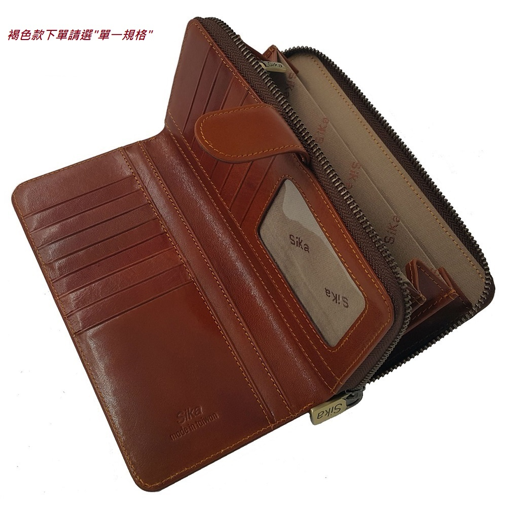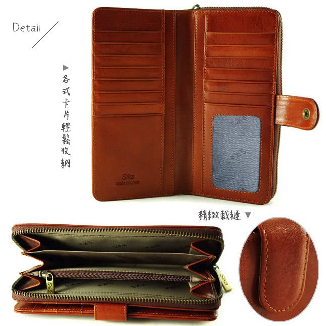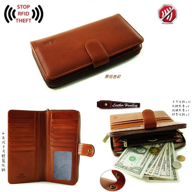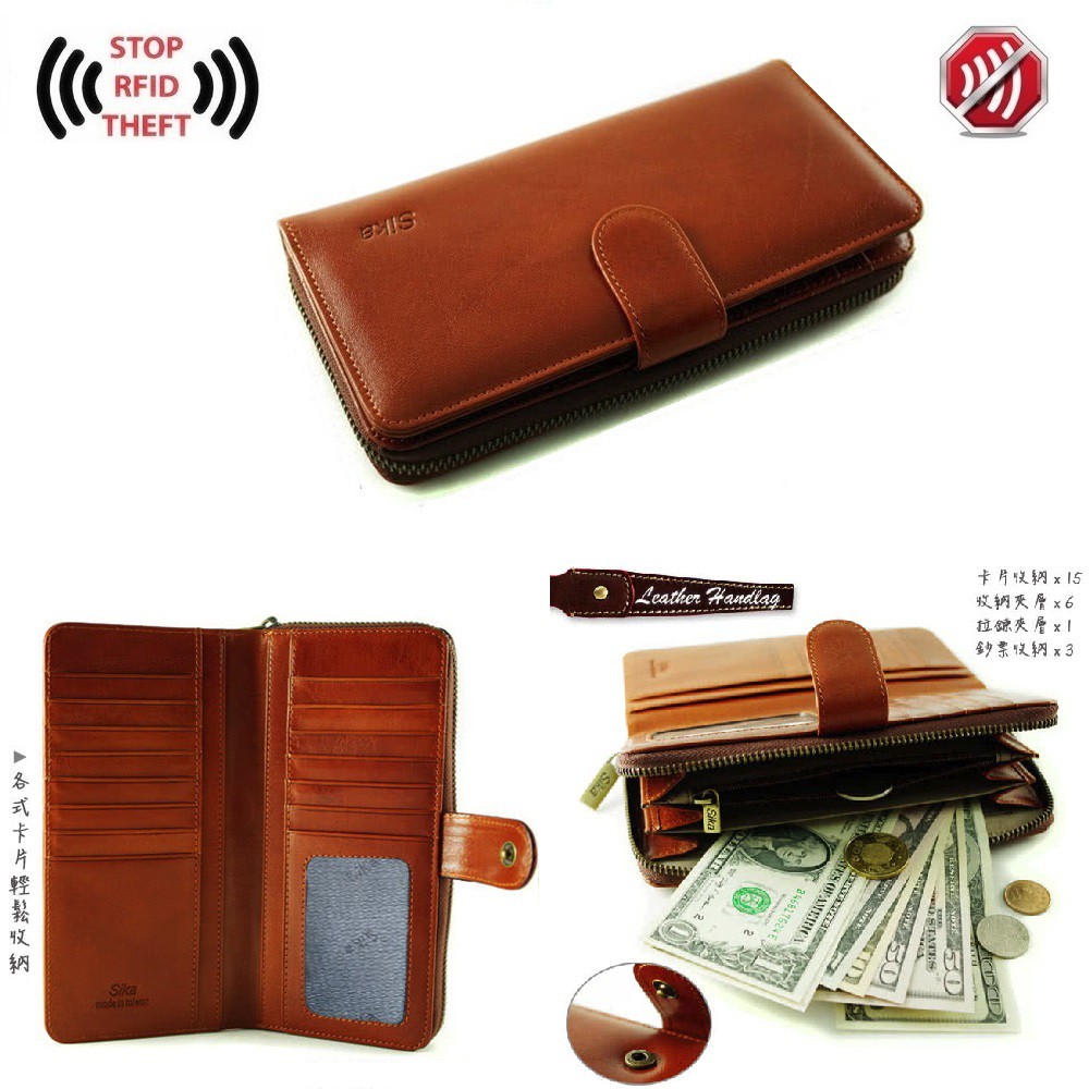 Sika防RFID側錄義大利時尚真皮拉鍊壓扣長夾 A8251 電子屏蔽錢包 女用長夾 牛皮 防盜 精品皮夾