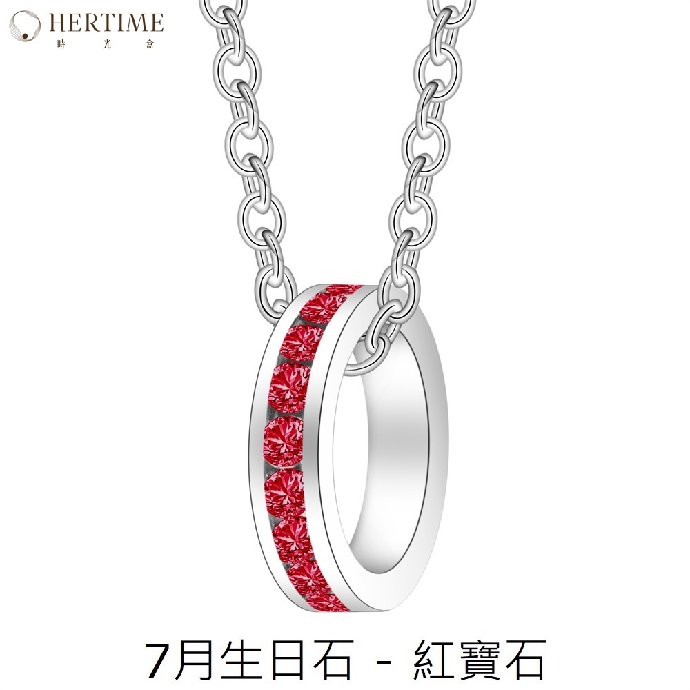 【hertime 時光盒】生日石永恆吊墬項鍊(7月紅寶石)