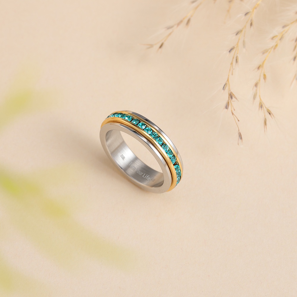 【hertime 時光盒】生日石旋轉永恆戒指(12月綠松石)