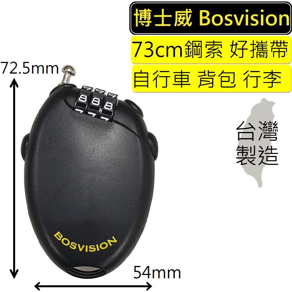 BOSVISION 博士威 3字輪伸縮式鋼索密碼鎖+73公分鋼索 (8981S) 自行車鎖 腳踏車鎖