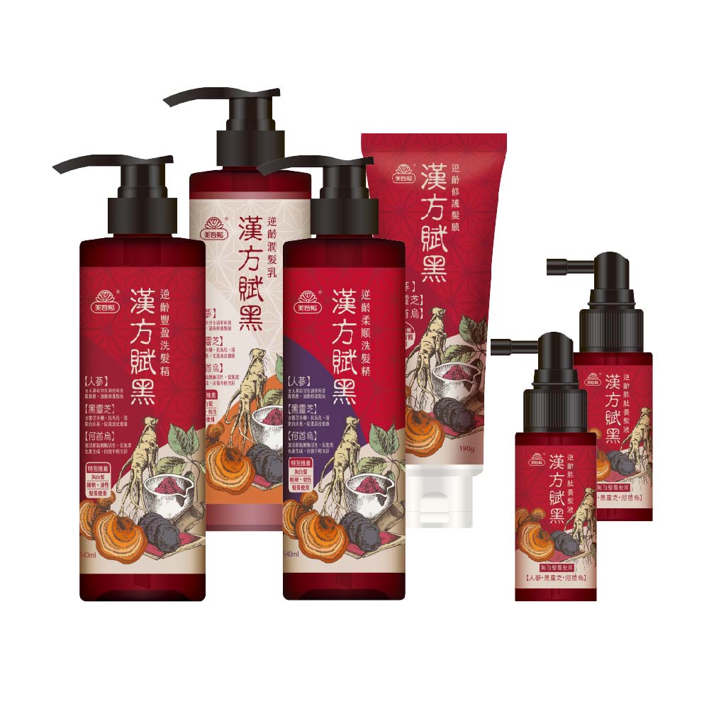 【美吾髮】漢方賦黑 逆齡洗潤養髮30日組 健髮/豐盈/柔順任選〔洗潤髮/洗護髮+養髮液2瓶〕何首烏/漢方人蔘/灰白髮
