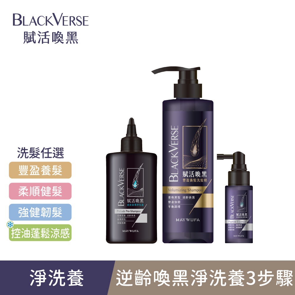 【美吾髮】BlackVerse賦活喚黑 逆齡淨洗養3步驟(淨化液+洗髮任1+養髮液)豐盈蓬鬆/強健髮根/頭皮水/涼感