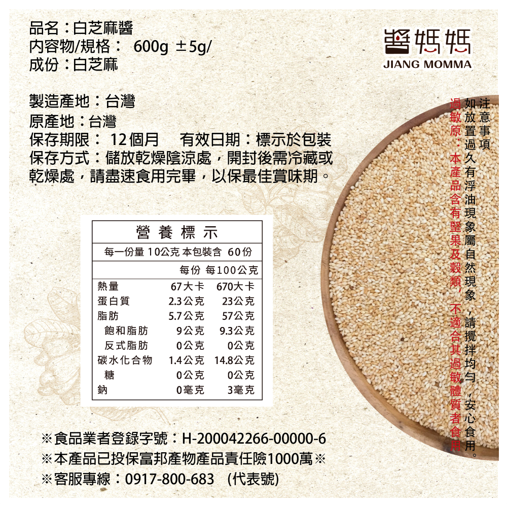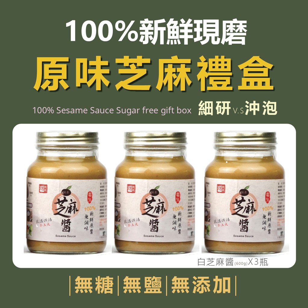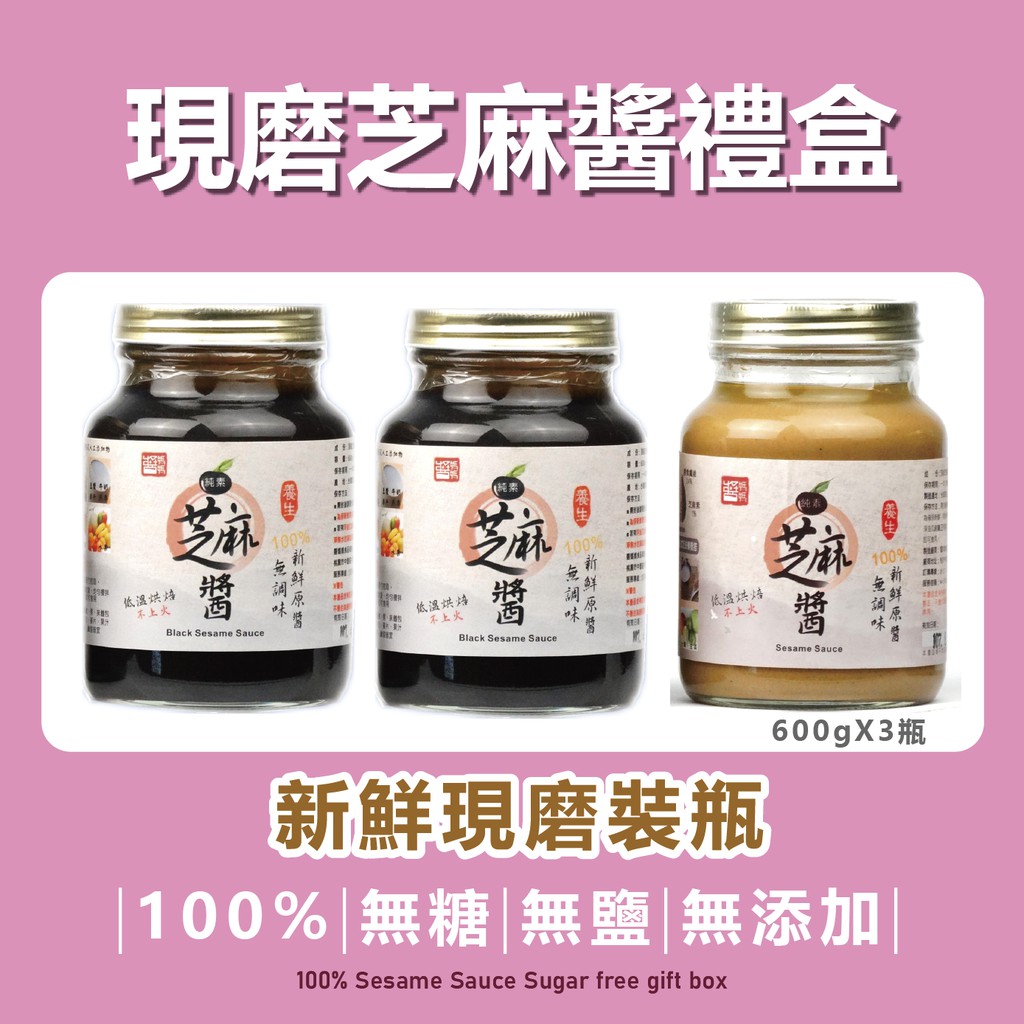 【醬媽媽】 100%純芝麻醬三瓶組/超商免運 純黑芝麻醬 600g 2瓶 + 純白芝麻醬 600g 1瓶無糖/無添加
