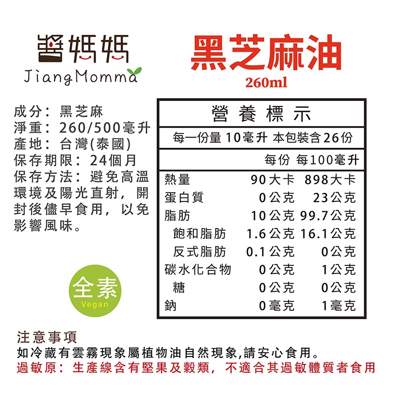 【醬媽媽芝麻醬】初榨冷壓100-純黑芝麻油-260ml-台灣經典傳統好油系列