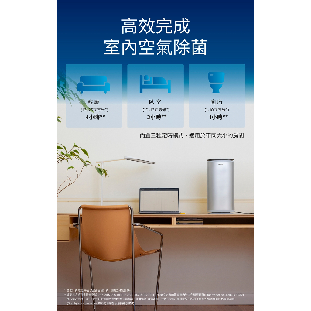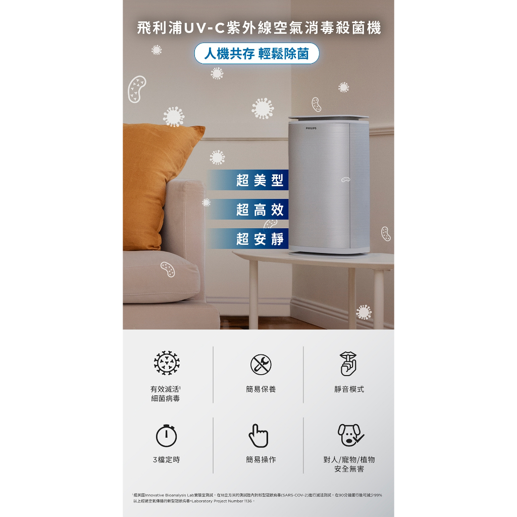 官方專售 公司貨【PHILIPS飛利浦】UV-C紫外線空氣消毒殺菌機小白殺PU008 全室消毒人機可共存 HEPA清淨機