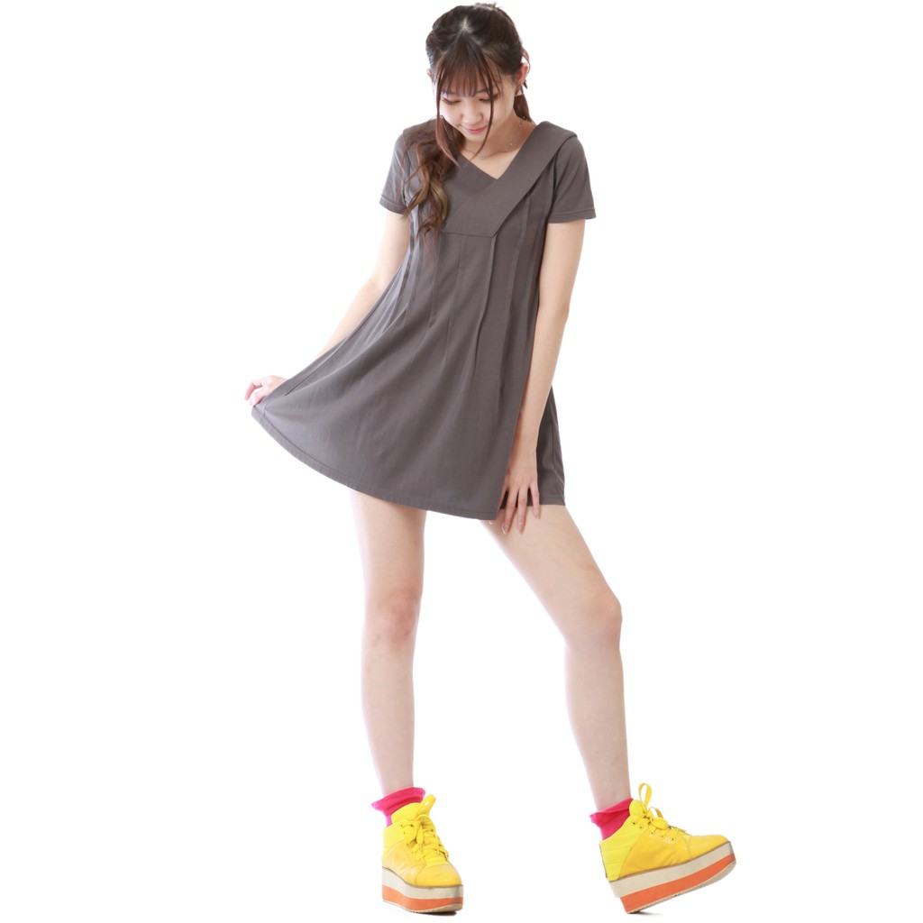 milida V領短版洋裝 學院氣質風 MMRYDP037