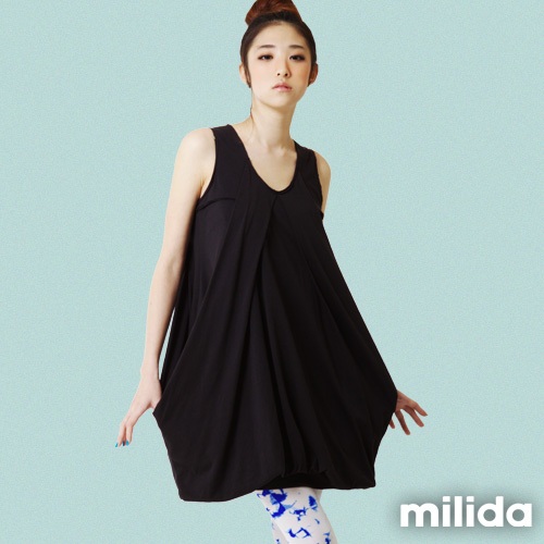 milida 無袖背心純棉洋裝 花苞剪裁 俏麗可愛造型洋裝 產前產後皆適宜 MR10P006