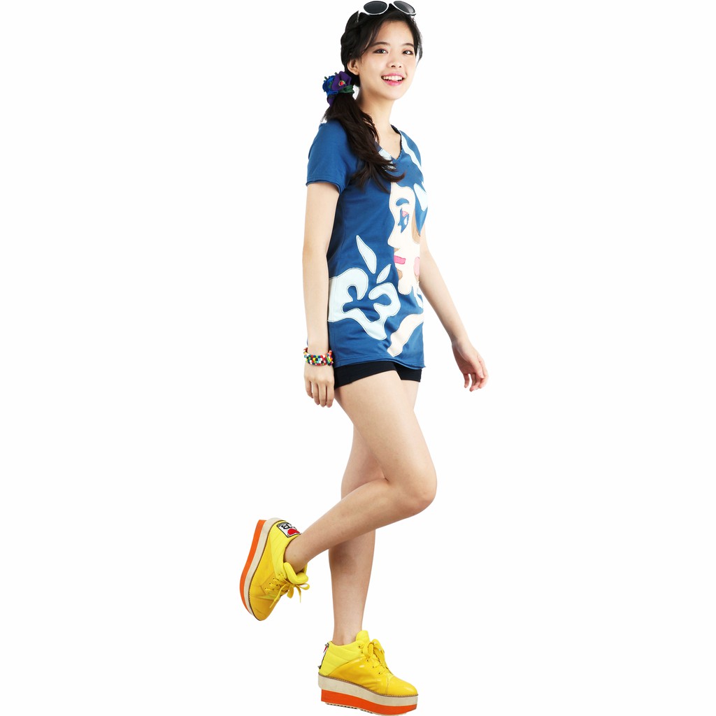 milida 純棉女版短T 美麗佳人拼貼風 V領短袖 MMTYFP001