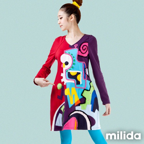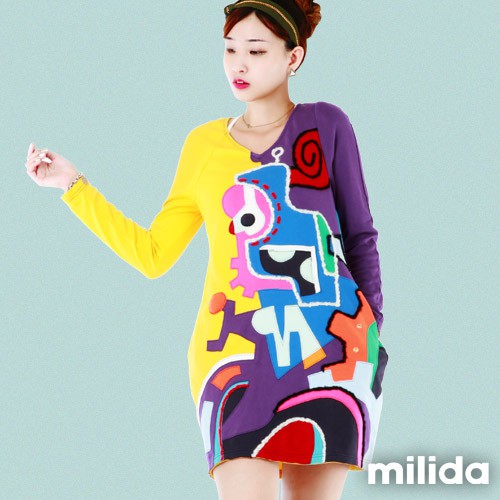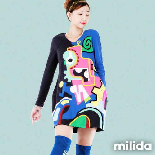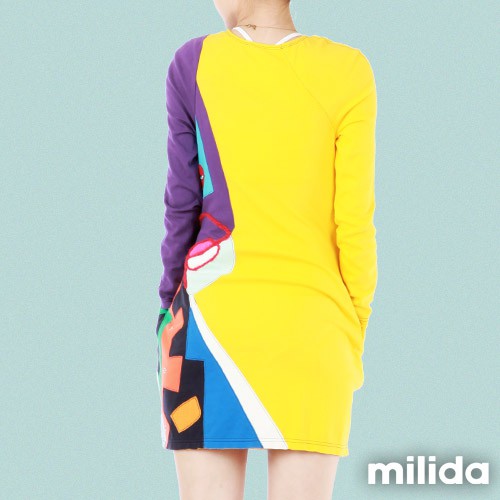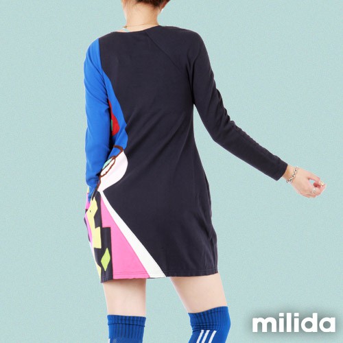 milida V領撞色袖俏皮洋裝 MMRYDA016