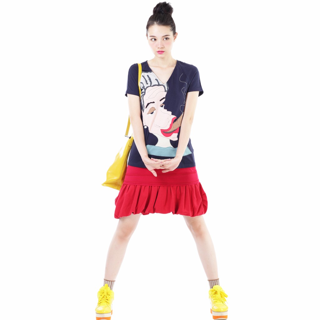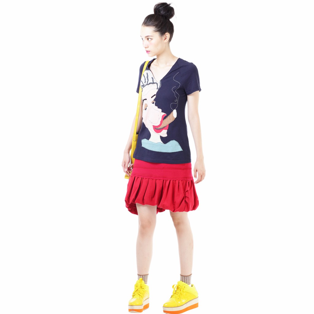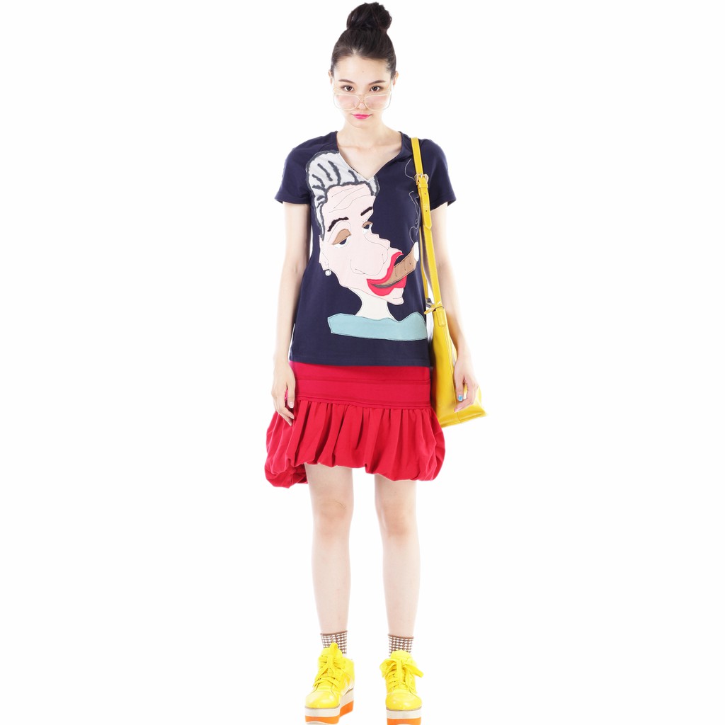 milida 女版純棉透氣T 人像插畫趣味拼貼風 V領短袖 MMTYEP008