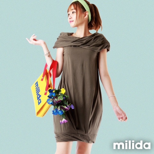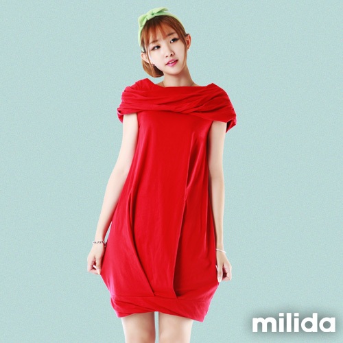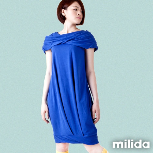 milida 一字領花苞洋裝 花苞版型剪裁 純棉 MR12P019