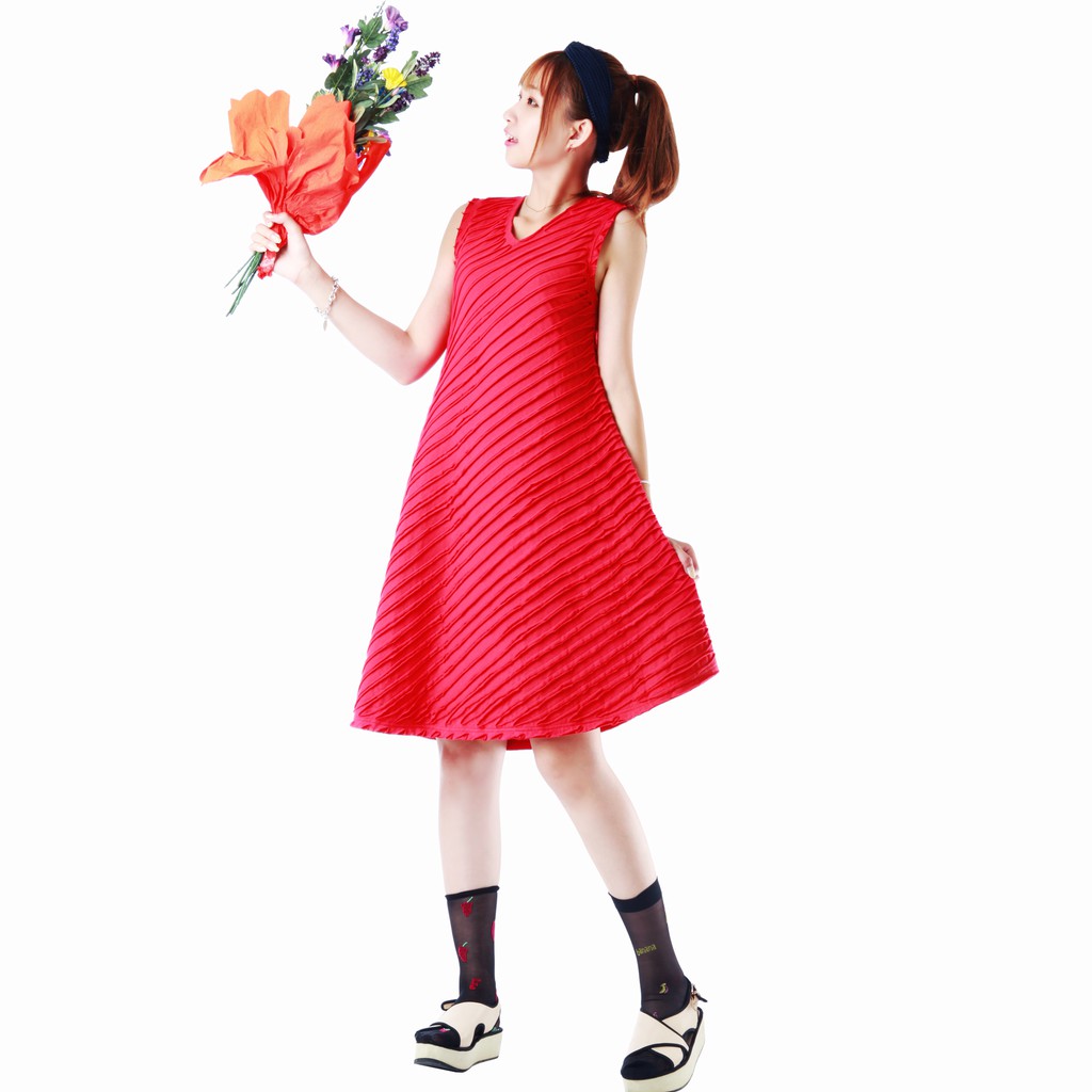milida 無袖斜條文洋裝 V領斜條文修飾身形 MR12P009