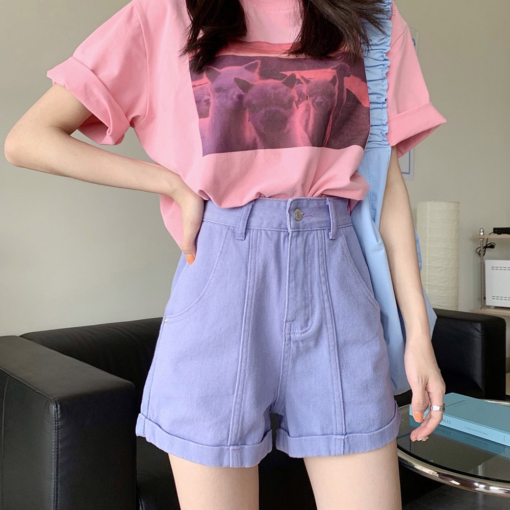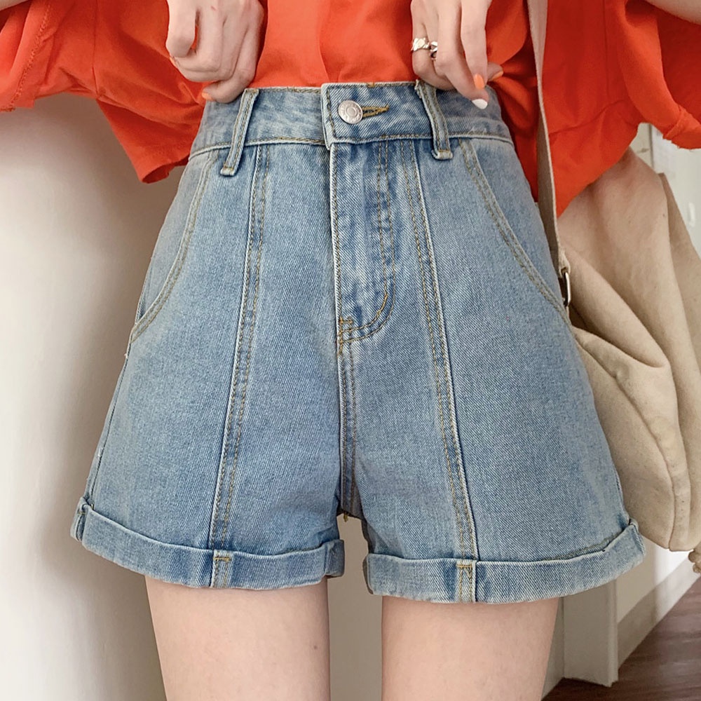阿華有事嗎AHUA 韓系女裝 高腰反折牛仔短褲【C1860】韓妞必備 百搭 可愛 清新 顯瘦 基本款 牛仔褲 短褲