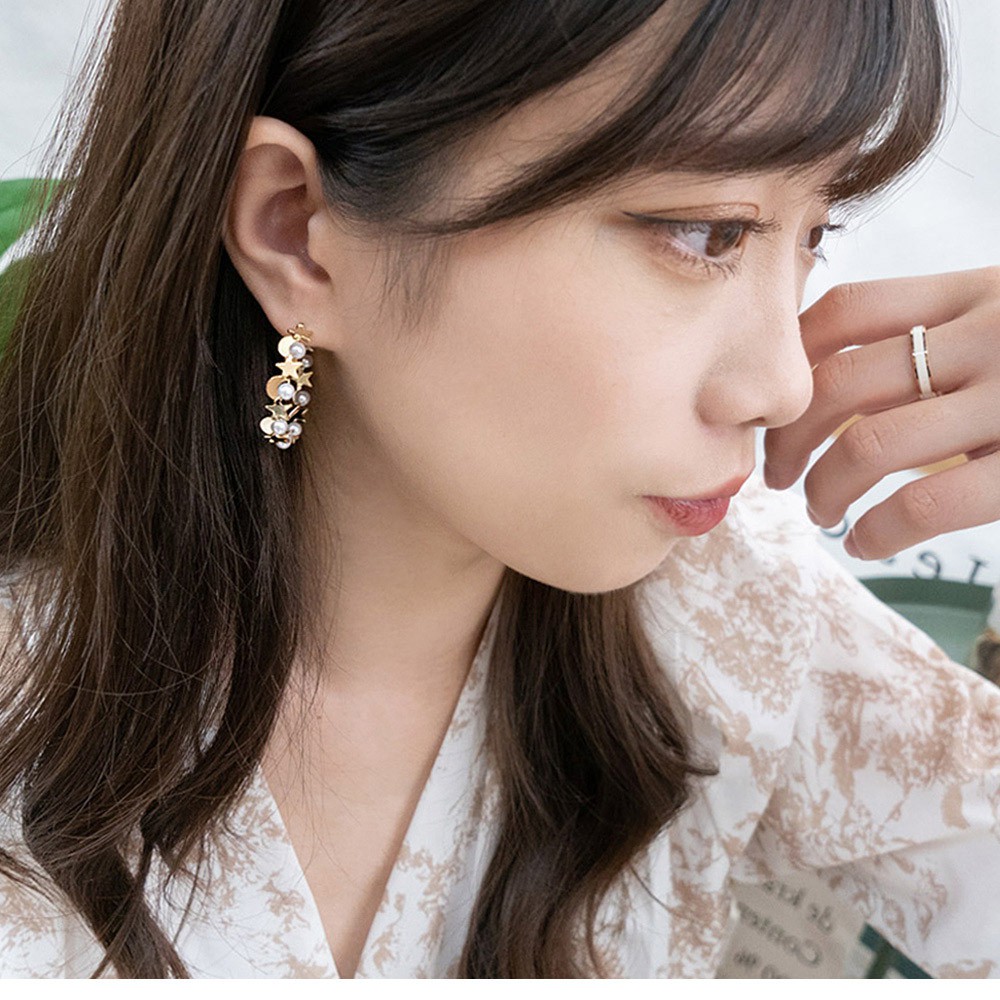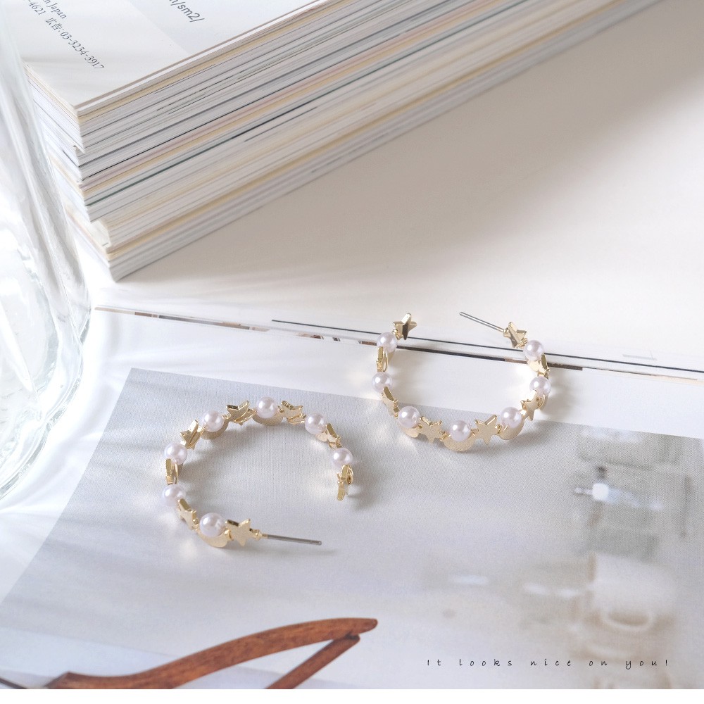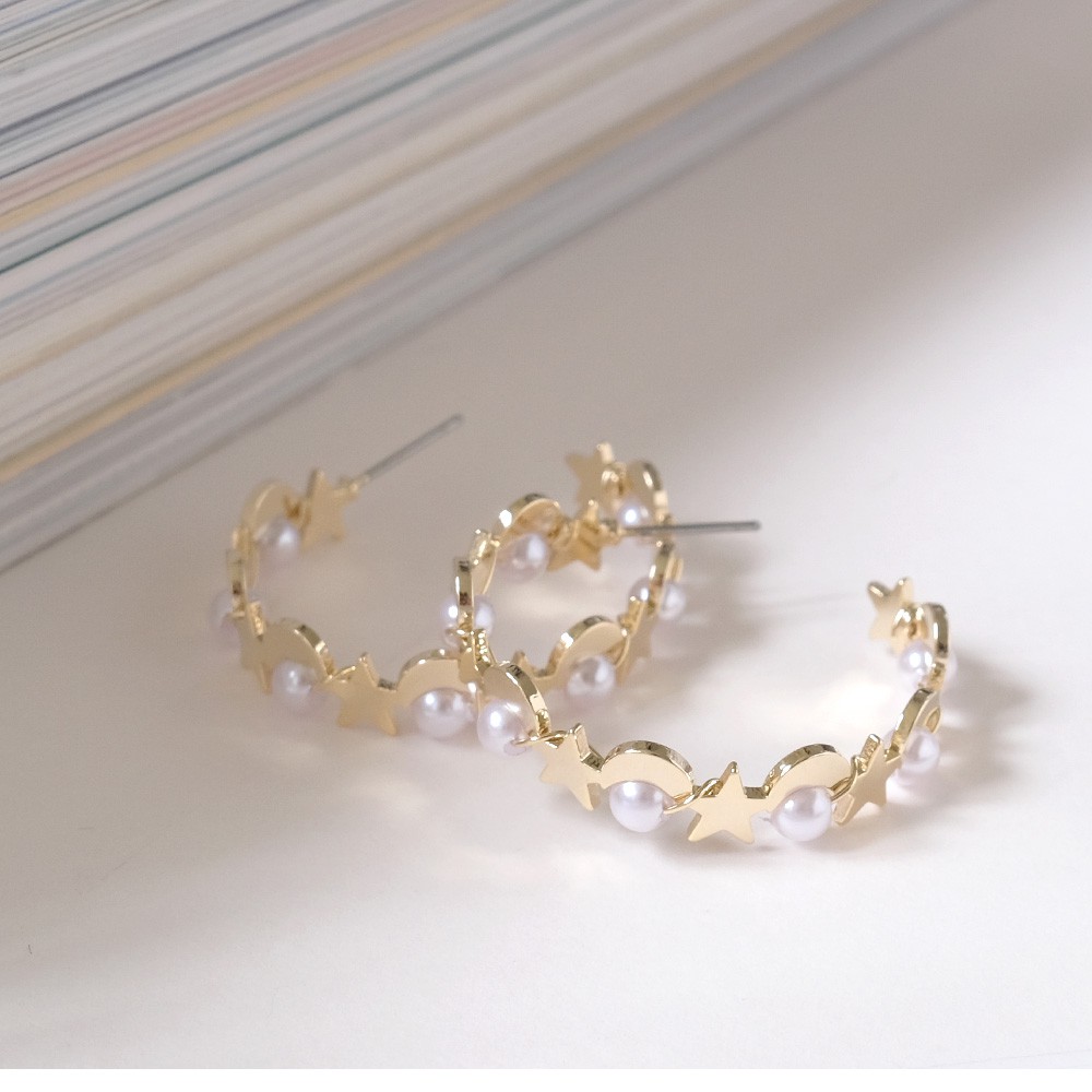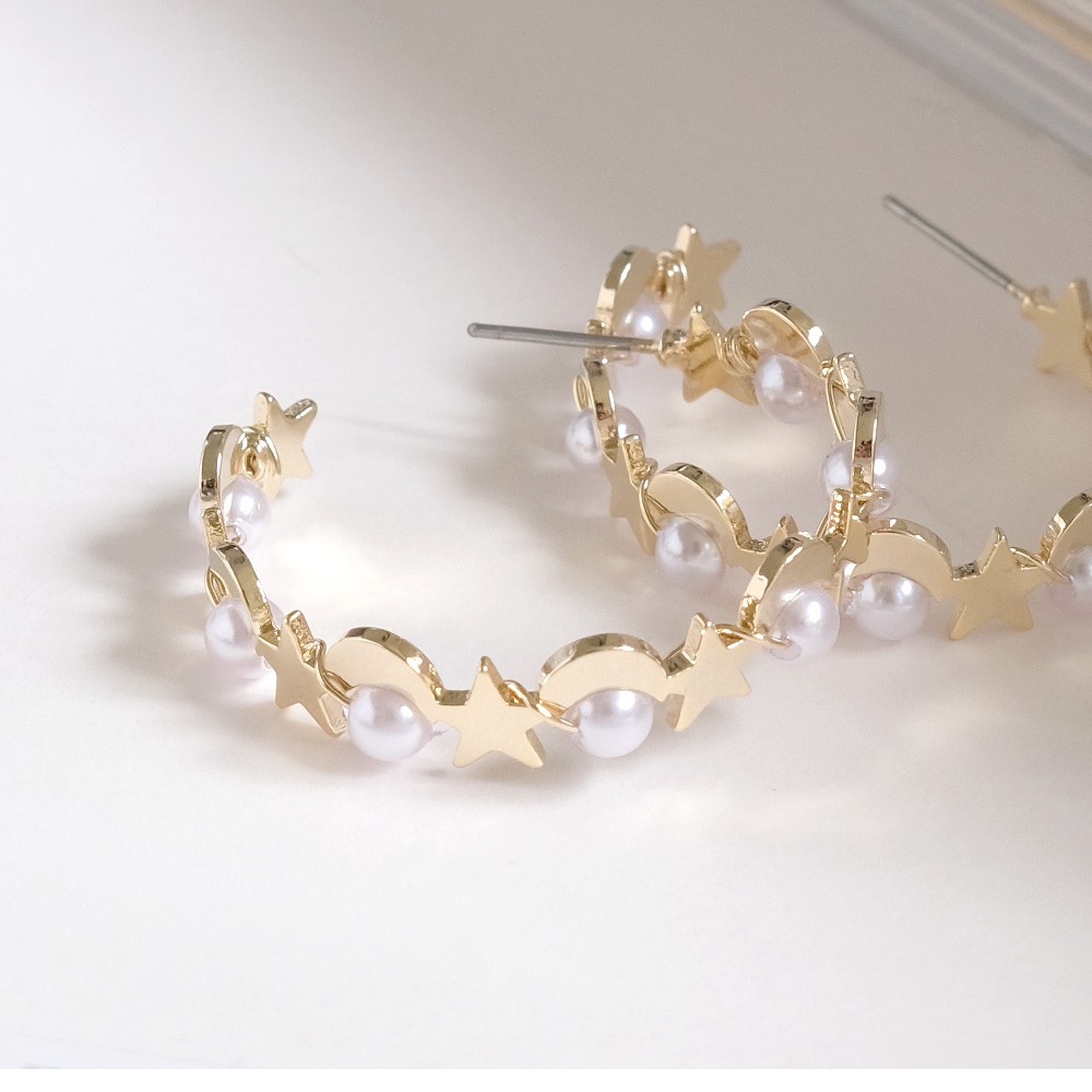 阿華有事嗎 AUHA 韓國飾品 交織珍珠星月C圈耳環【A0580】百搭 簡約 時尚 氣質 浪漫 耳針 韓妞必備 基本款