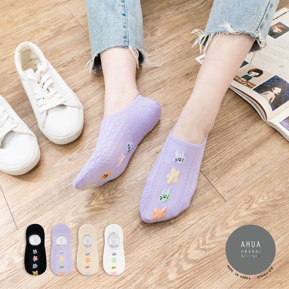 AUHA阿華有事嗎 韓國襪子 立體紋路花朵蝴蝶隱形襪 【K1226】少女襪 韓妞必備 百搭純棉襪