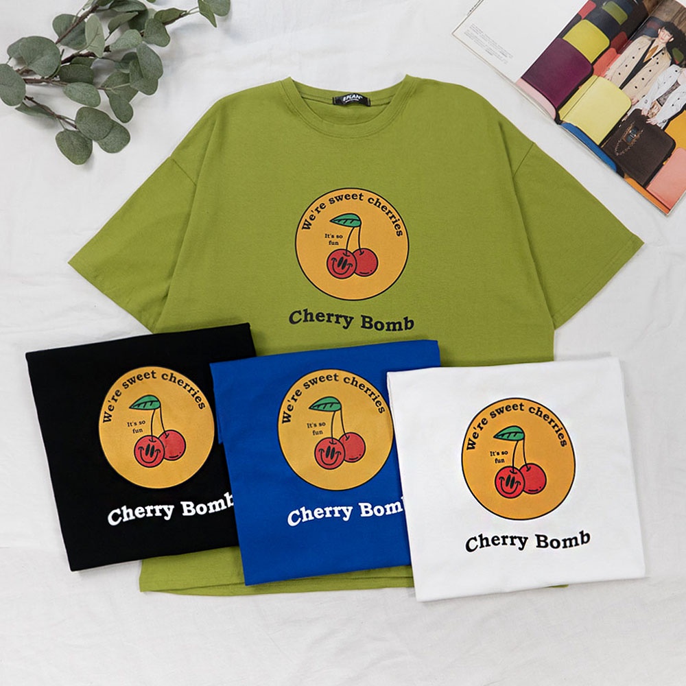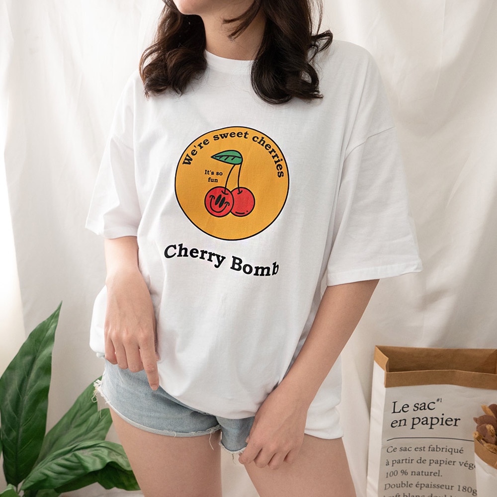 AUHA阿華有事嗎韓國女裝 cherry水果圖案短袖T恤【C1887】 韓妞必備 百搭顯瘦基本款