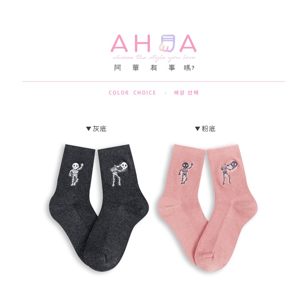 AHUA阿華有事嗎 電繡骷顱頭中筒AB襪 R0009 MIT台灣製造