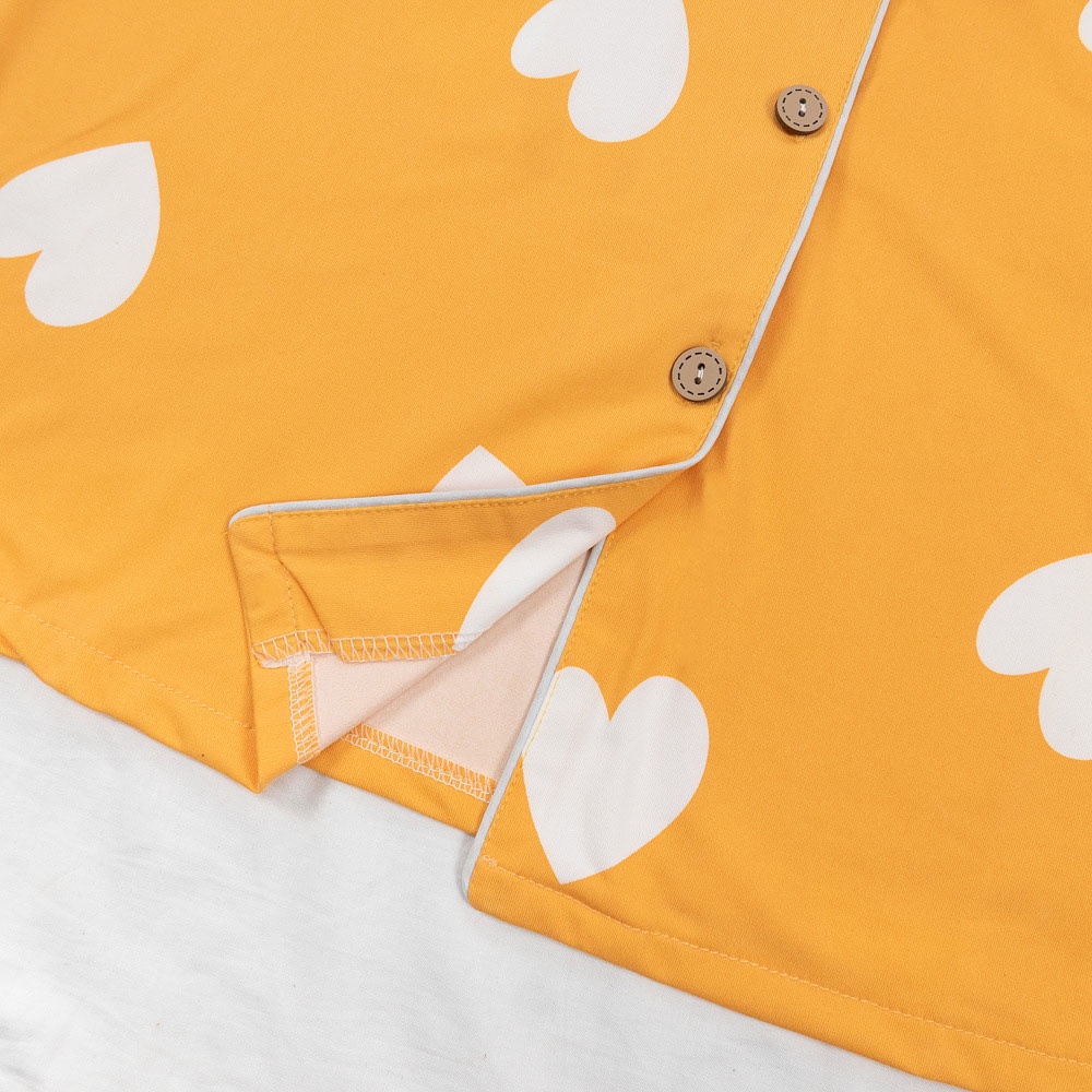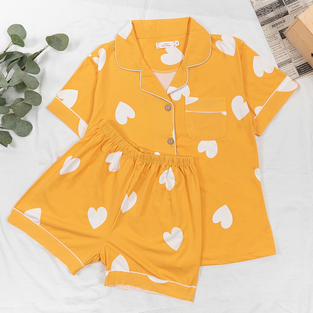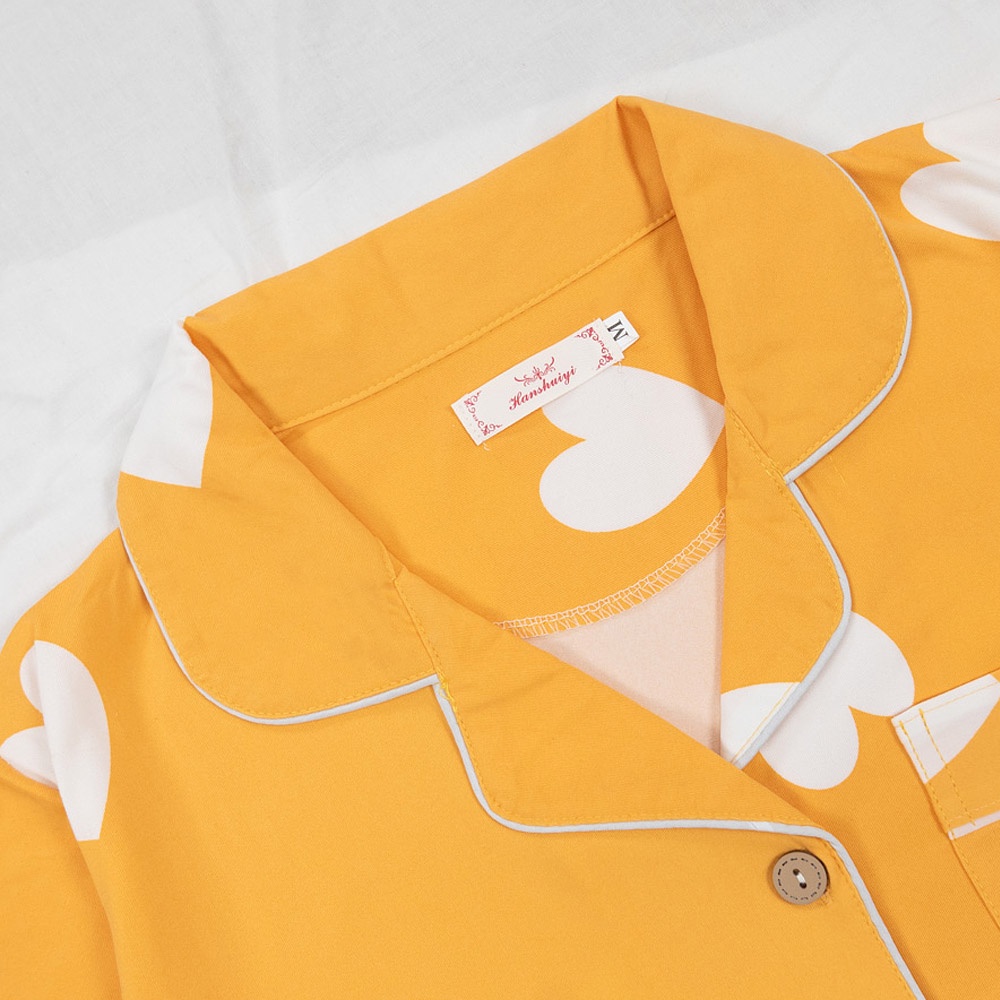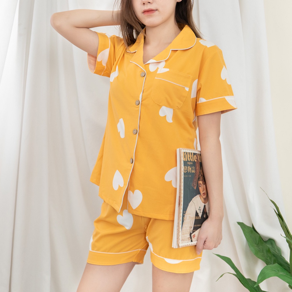 AHUA阿華有事嗎 韓系女裝 愛心圖案翻領短袖居家服 套裝 睡衣【C2036】家居服 睡衣韓妞必備 百搭基本款