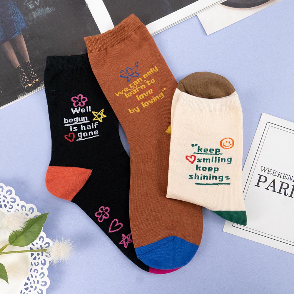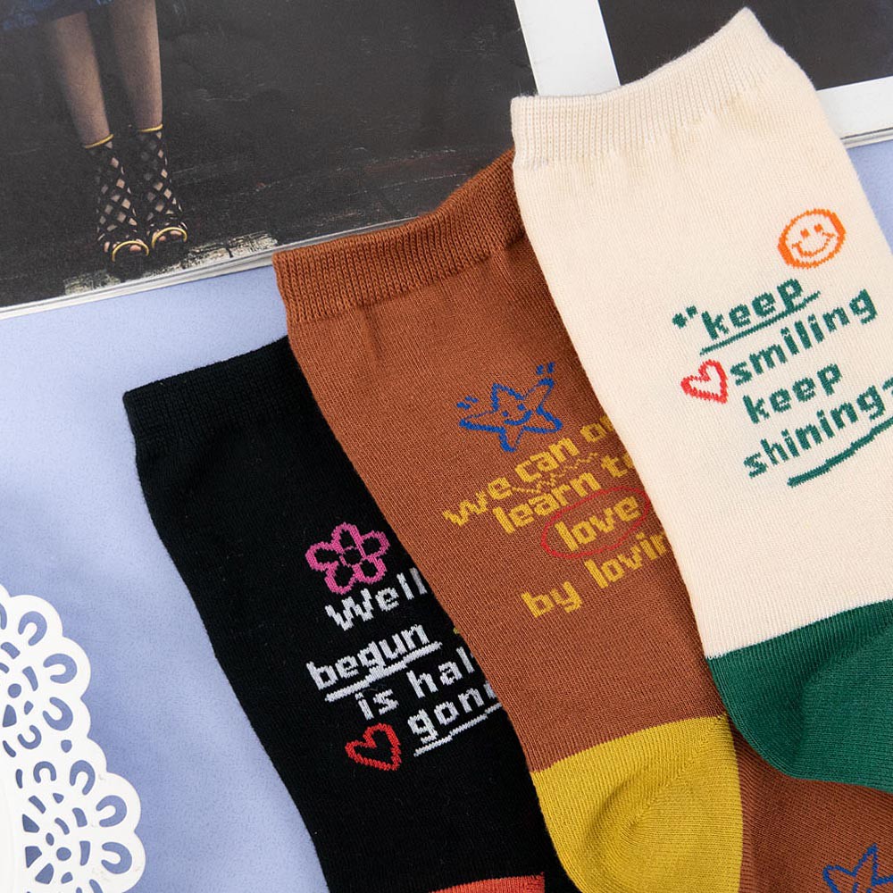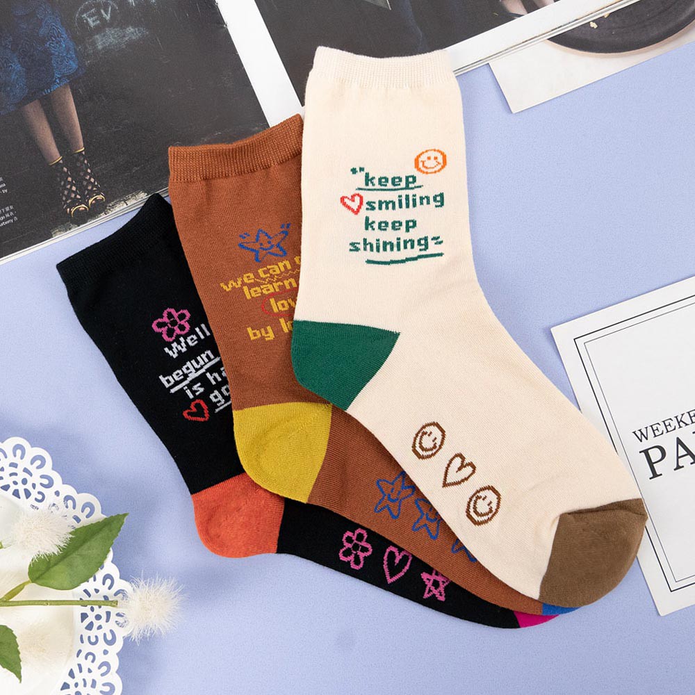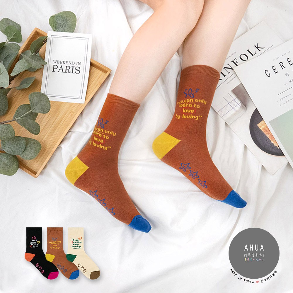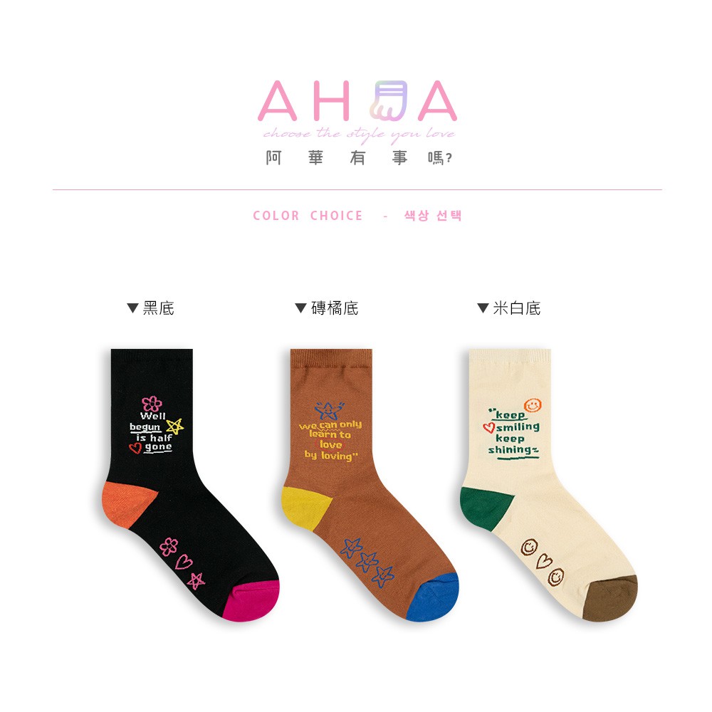 AHUA阿華有事嗎 韓國襪子 撞色英文字句小圖中筒襪【K1304】少女襪 百搭純棉襪