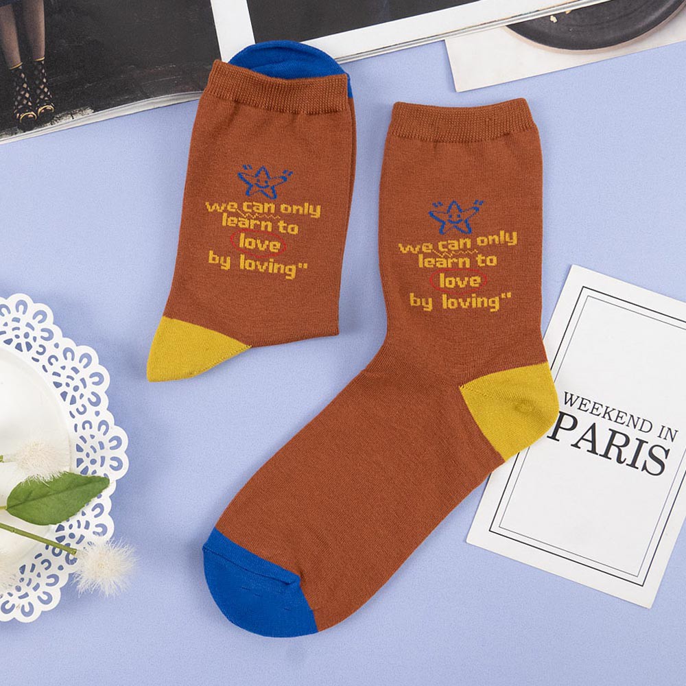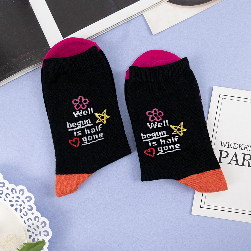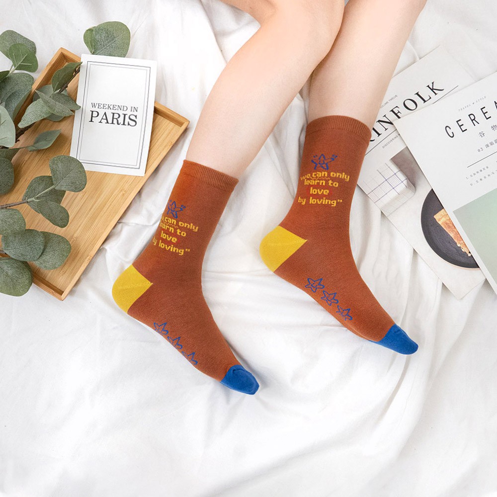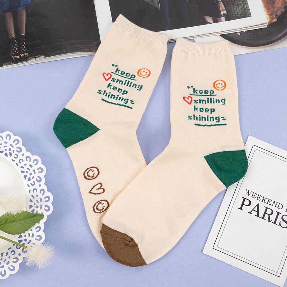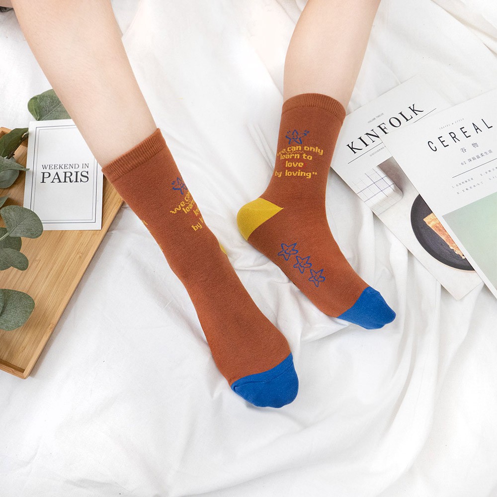 AHUA阿華有事嗎 韓國襪子 撞色英文字句小圖中筒襪【K1304】少女襪 百搭純棉襪