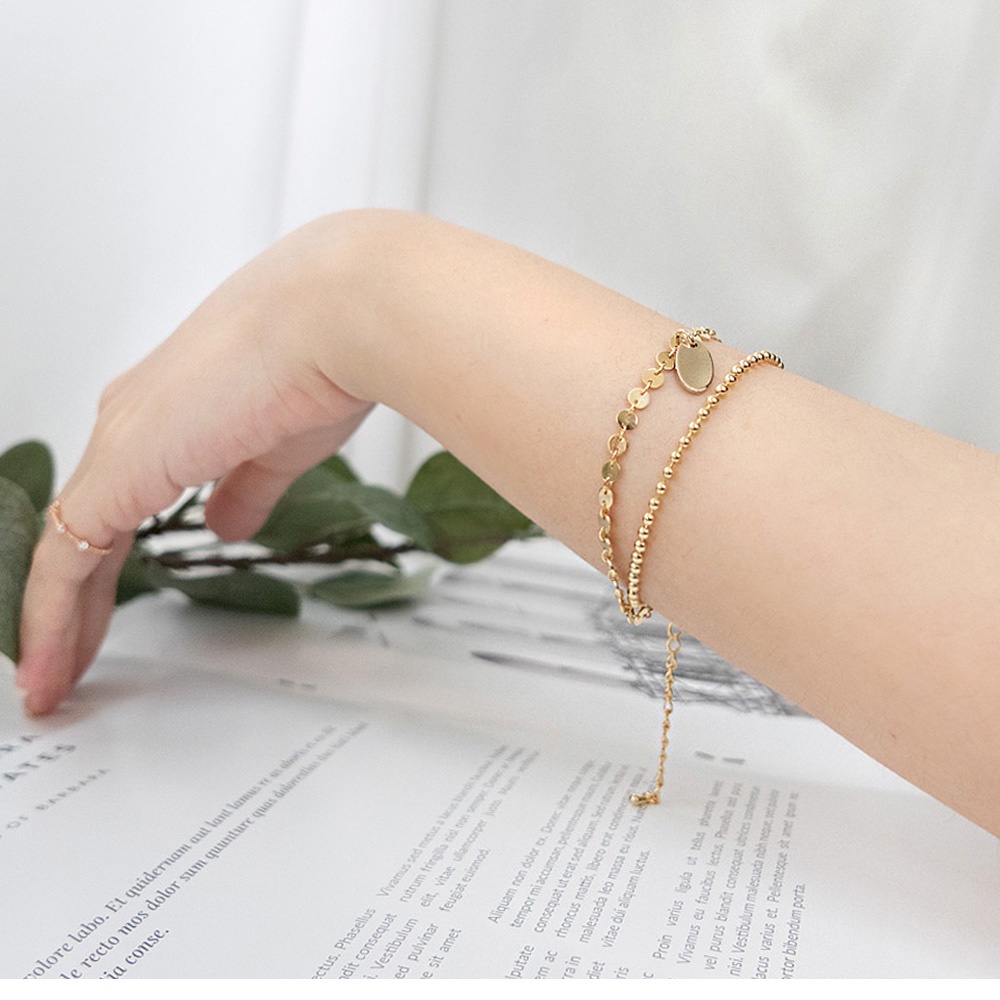 AHUA阿華有事嗎 韓國飾品 金屬亮片雙層珠珠手鍊【A0822】正韓 時尚 簡約 百搭 韓妞必備 可調節手鍊