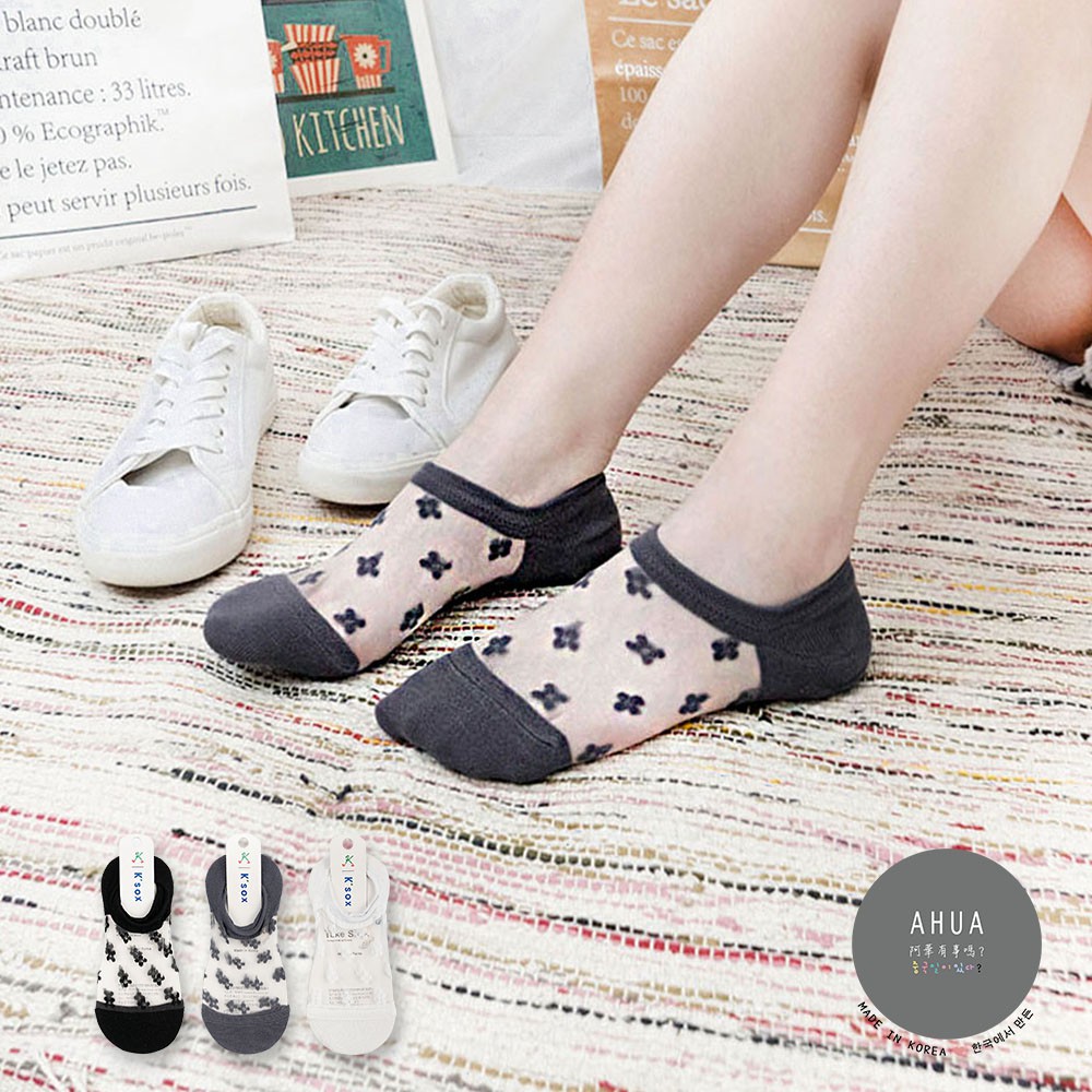 阿華有事嗎AUHA 韓國襪子 透膚滿版小花朵隱形襪【K1116】少女襪 韓妞必備長襪 百搭純棉襪